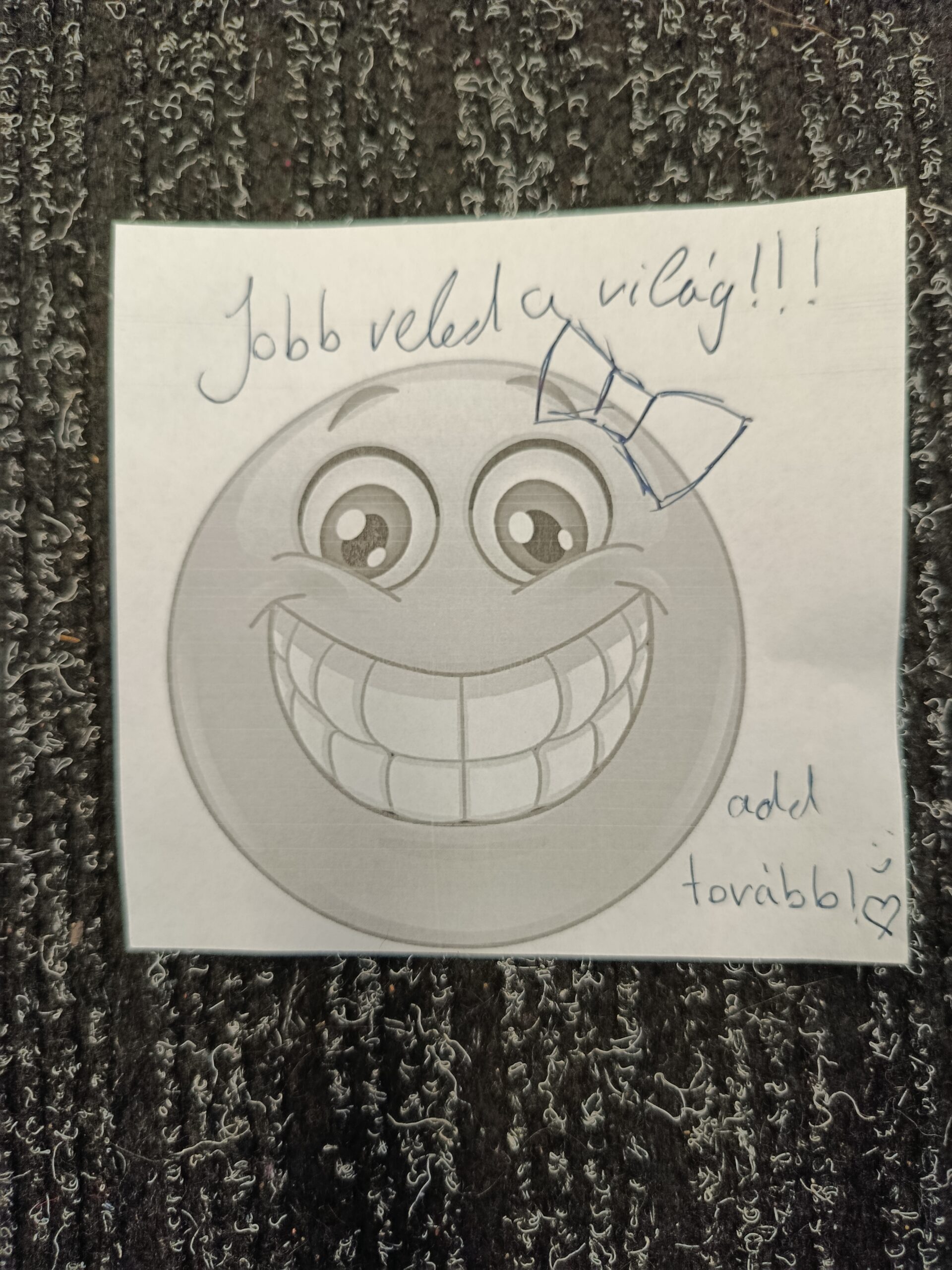 Ma pedig „Add tovább a mosolyt!” kártyákat készítettek, karácsonyig mindenki vállalt három jó cselekedetet, amit megpróbál teljesíteni, az iskolában körbejárva mosolyt gyűjtöttünk, és morcos társukat próbálták felvidítani.