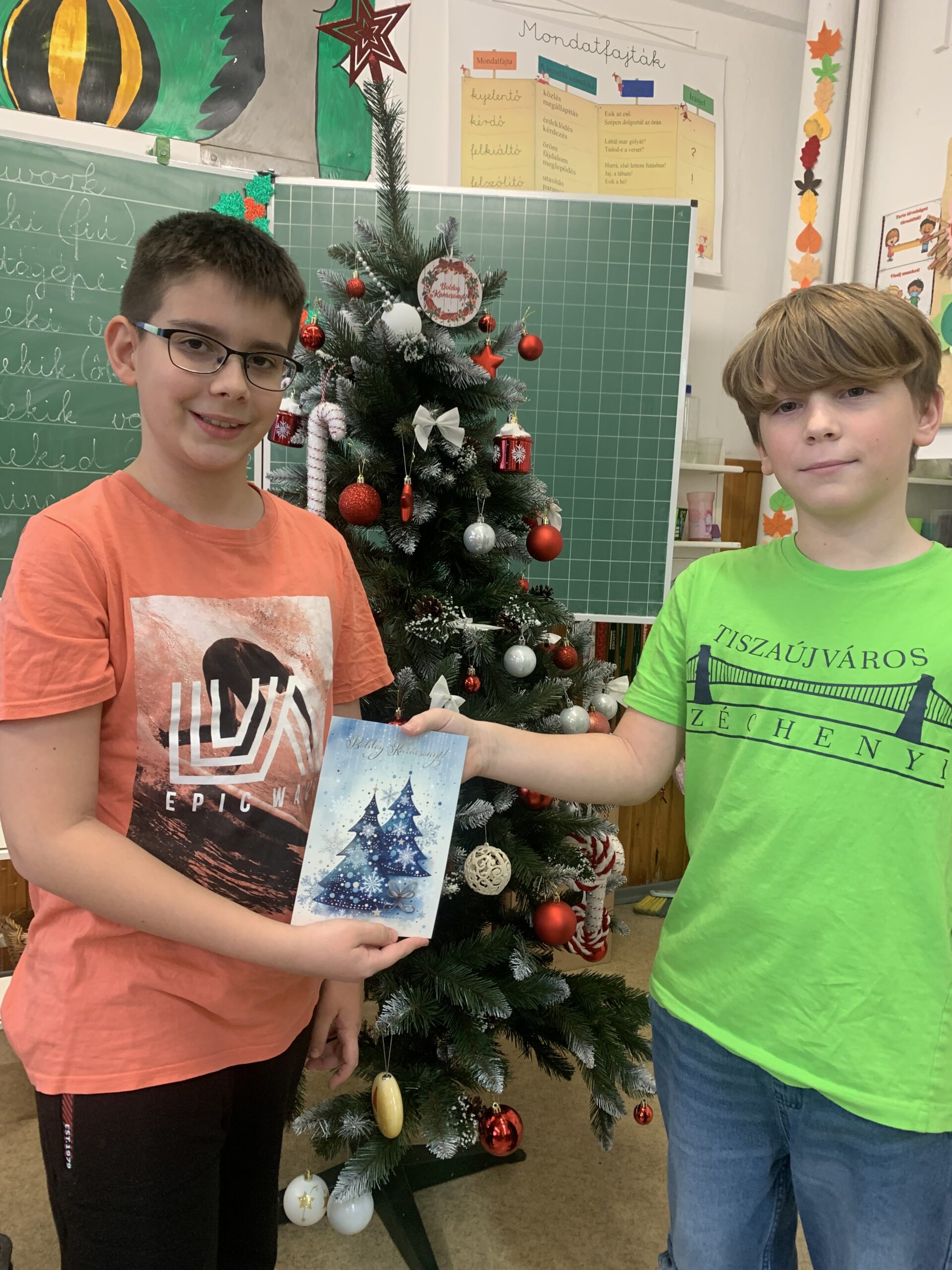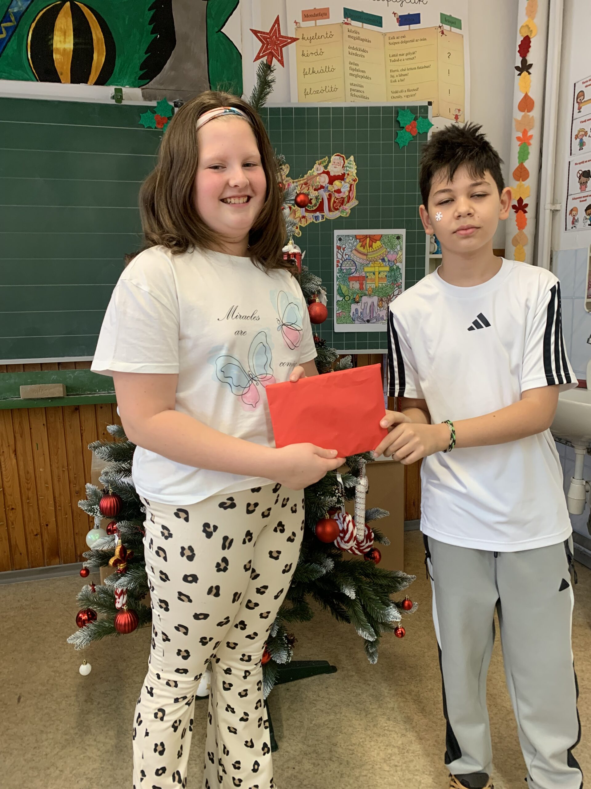 Az adventi időszakban az osztályunkban kihúzta mindenki, hogy kinek ad majd egy kedves üzenettel, vagy idézettel megírt karácsonyi képeslapot. A létszám alapján kiszámolva kezdtük el és mindennap egy-két húzás valósult meg. Nagyon izgatottan várták, hogy ki kap majd képeslapot. A boldogságórán megbeszéltük, mit éreztek, amikor készítették, és mit éreztek, amikor kaptak. Ilyenkor a figyelmesség, kedvesség, önzetlenség, boldogság, szeretet szavak fogalmazódtak meg.