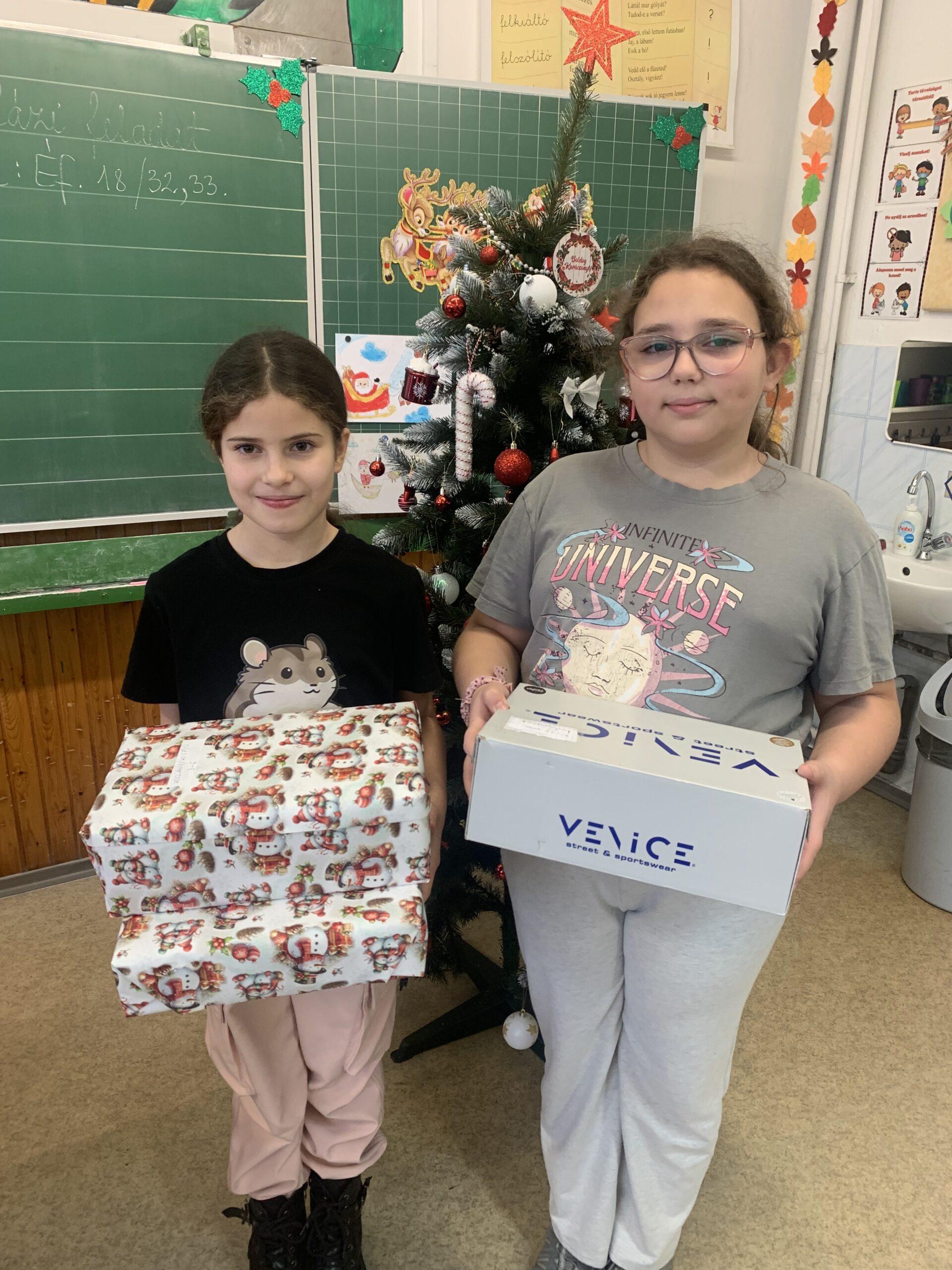 Az adományozásra is sor került, a Mosolymanók cipősdoboz gyűjtésben vett részt osztályunk.