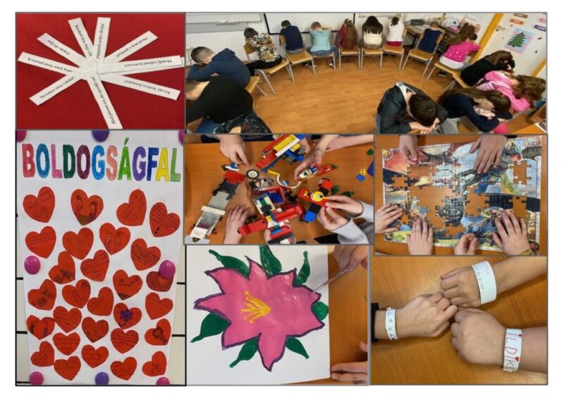 A 4.a osztály közös ráhangolódással kezdte a programot: a gyerekek a boldogsághoz kapcsolódó szavakat és élményeket gyűjtöttek, majd papírcsíkokra írt rövid üzenetek segítségével gondolkodtak el az apró figyelmességek értékéről. Piros papírszívekre jegyzett ötleteikből létrehozták a saját boldogságfalukat, mely inspiráló gondolatokkal telt meg. A foglalkozás végén mindenki választott egy jó cselekedetet, melyet a következő héten megvalósított, így az elképzelések valódi tettekké váltak.
