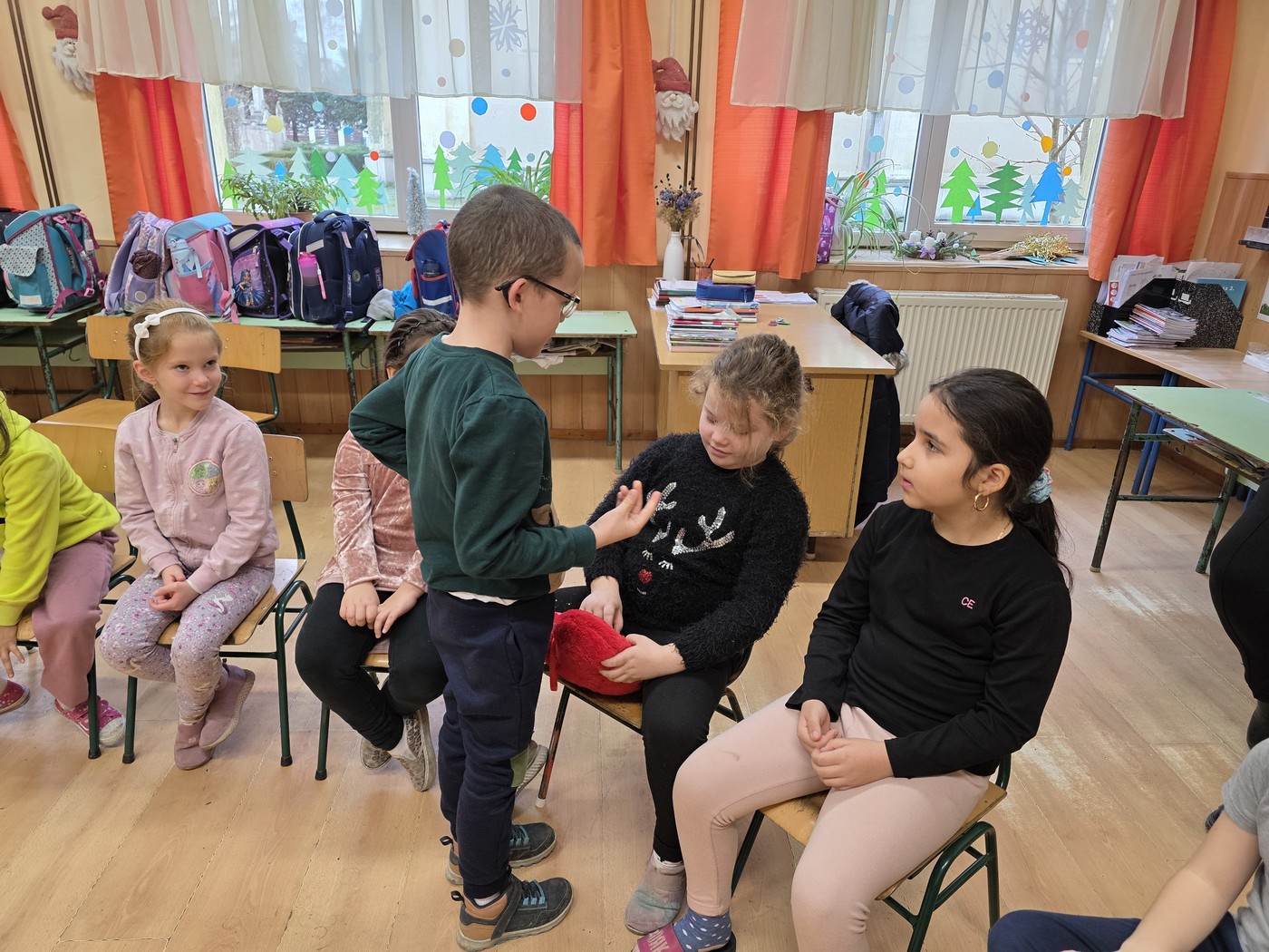 A december hónap teljes egészében a jócselekedetek téma jegyében telt el. A karácsony közeledtével nagyon sokat beszélgettünk a jó cselekedetekről, a segítségnyújtásról., verseket, dalokat tanultunk. A testvérosztállyal megtartottuk a közös Mikulás ajándékozásunkat. Luca napján búzát vetettünk. A gyerekekben egyre jobban tudatosult, hogy örömet okozni nemcsak drága ajándékokkal lehet, ezért „kedves szavak ajándékozását tartottunk”. Jó cselekedetként az iskola területén elhelyezett madáretetőket is feltöltöttük. (A tél folyamán ezt folyamatosan végezzük.) A mézeskalácsház napját közösen készített dekorációs mézeskalácsházikóval, tettük emlékezetessé, melyet iskolánk karácsonyi műsorához díszletnek ki is állítottunk. A hónap során végzett tevékenységekből a gyerekek megtanulhatták, hogy az elfogadás, segítségadás, jó cselekedet, jóság, nagylelkűség, kedvesség, támogatás során még értékesebb emberré válhatnak.