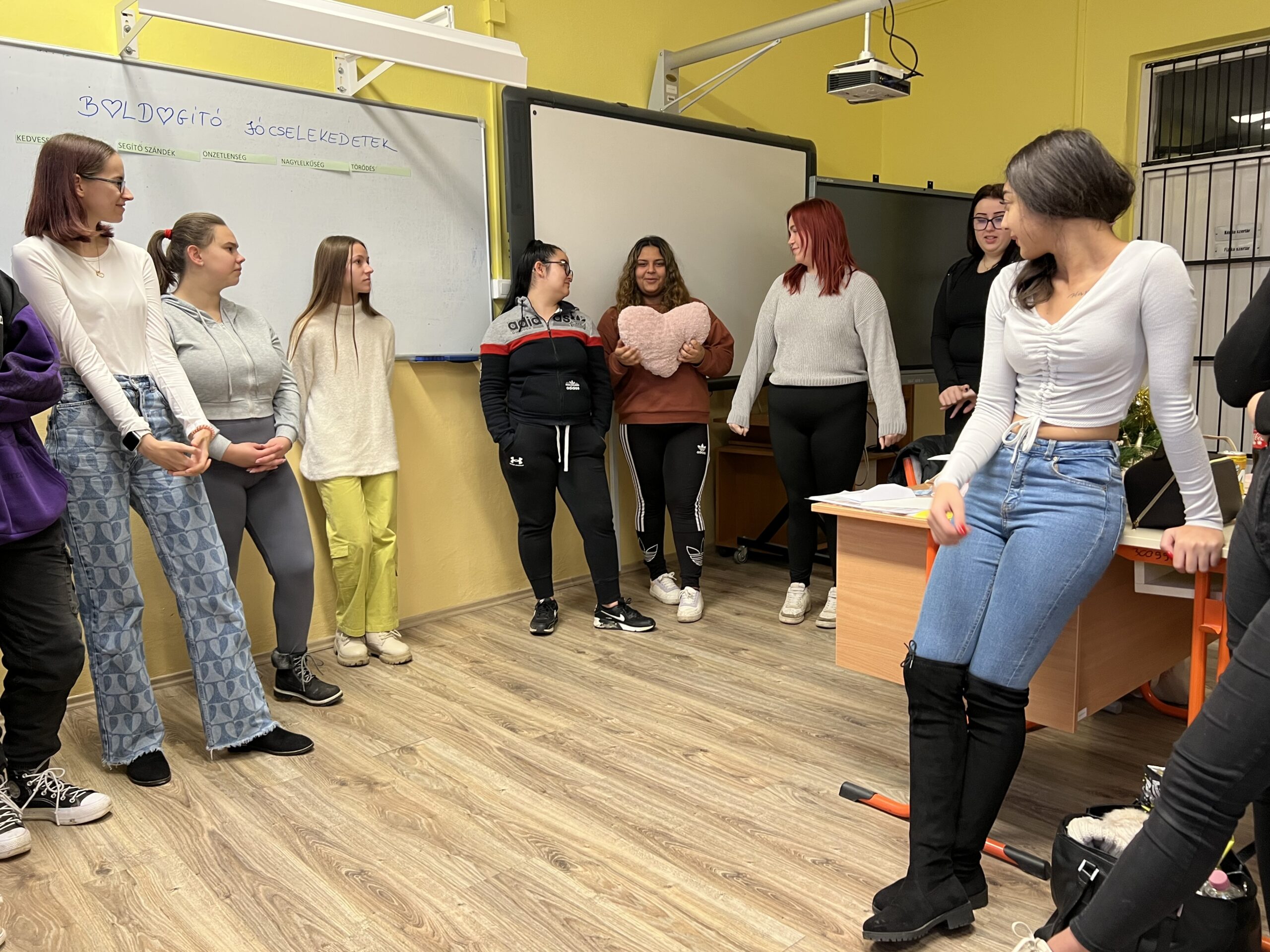 5. A szeretet: A tanulók körbe állnak, majd minden tanuló elmondja, hogy mit jelent neki a szeretet. A szív alakú párna mindig annál a tanulónál van, aki megfogalmazza gondolatait.