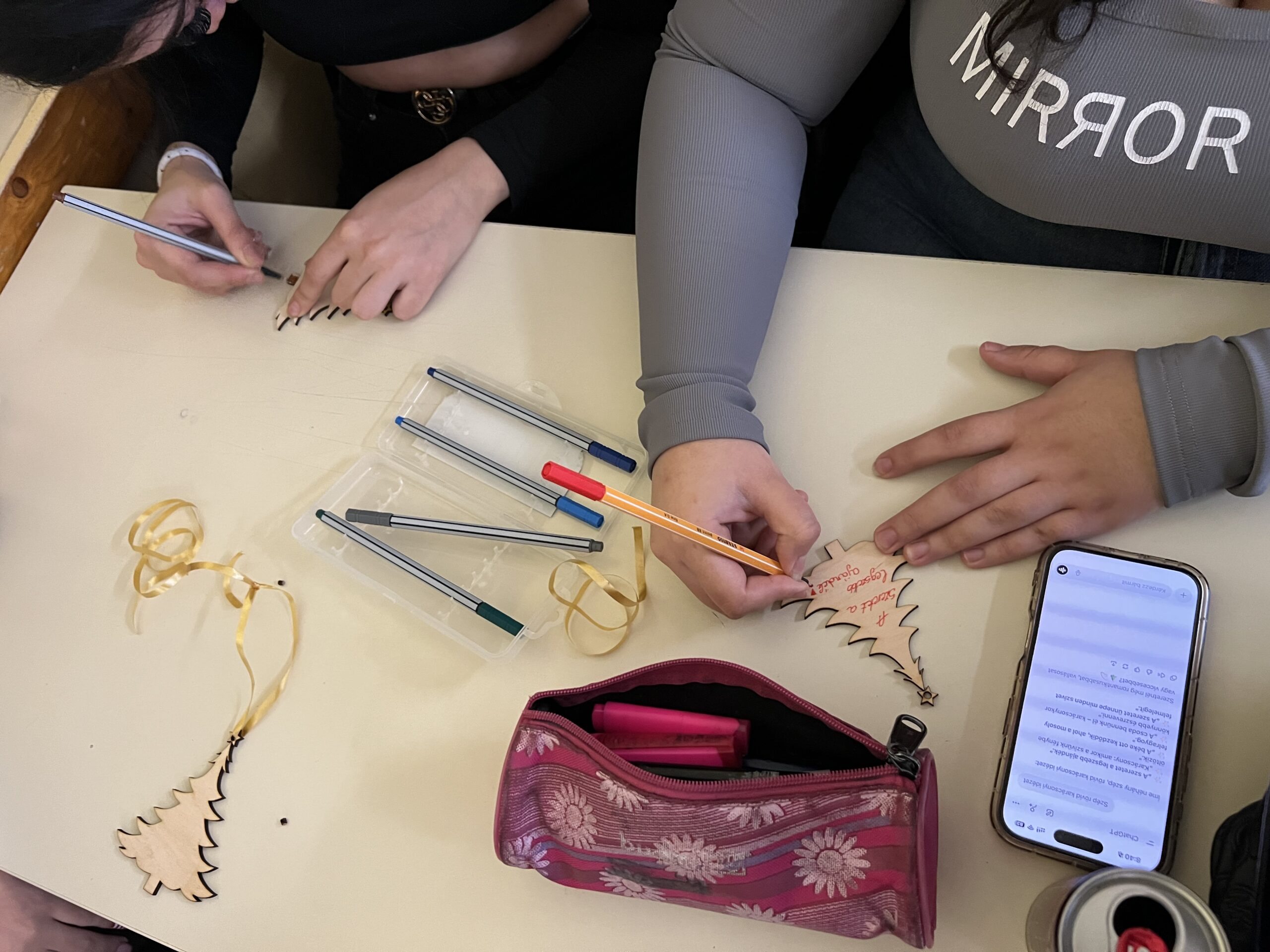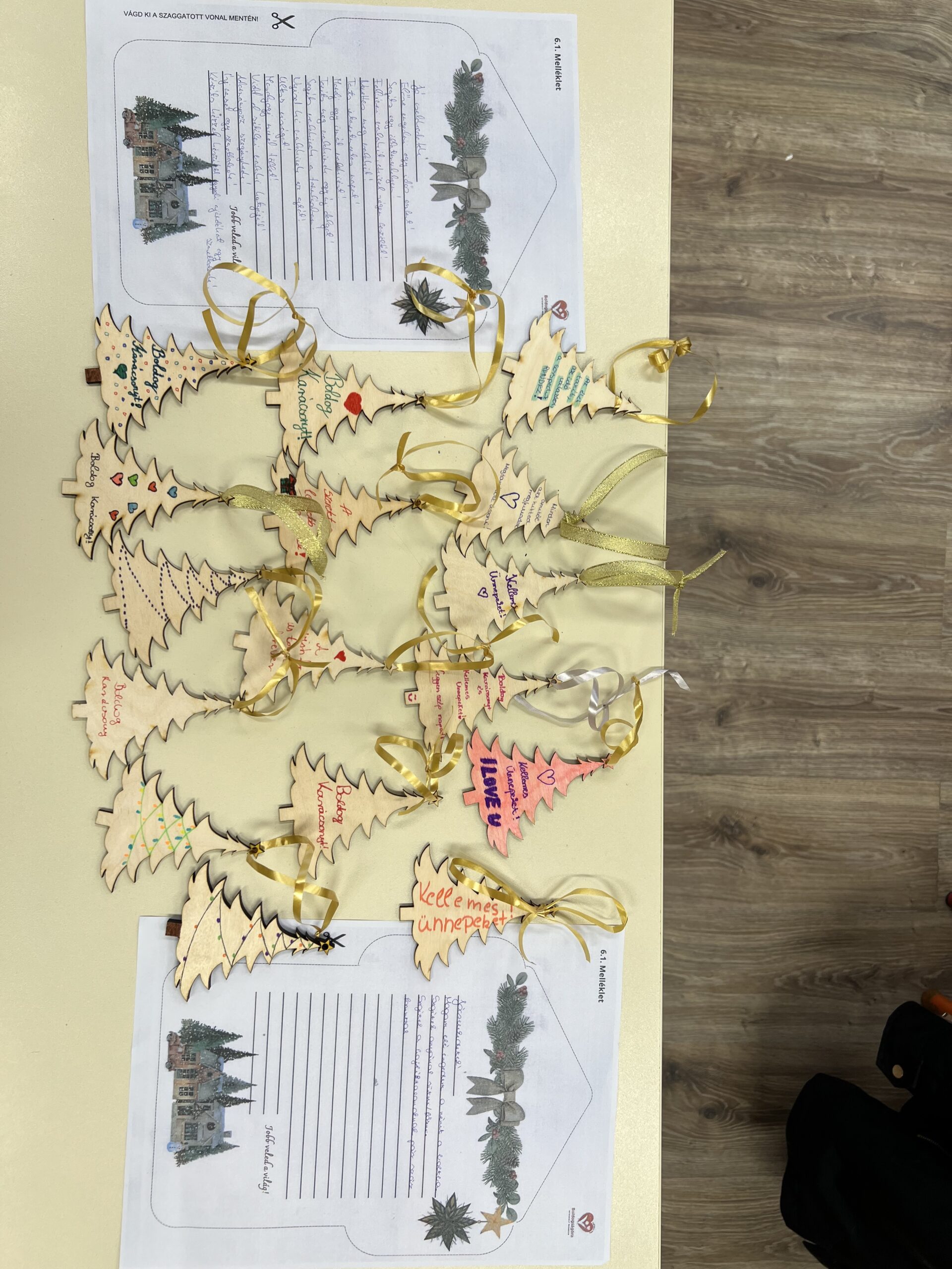 A tanulók egy előre kivágott fadíszre üzeneteket írtak, rajzoltak, szalagot kötöttek rá, majd egy általuk kiválasztott személynek adták át. Valaki az iskolában egy diáktársának, pedagógusnak, technikai dolgozónak, van aki az utcán egy ismeretlennek, van aki a családtagjának ajándékozta az általa készített karácsonyi díszt.