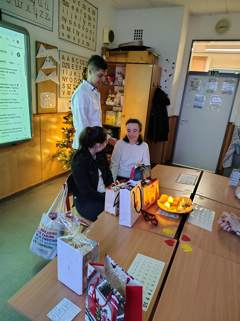 Ezt a témát tevékenykedve éltük meg. Elhatároztuk, hogy az adománygyűjtő adventi vásárra mézeskalácsot készítünk. Meggyúrtuk a tésztát, lekentük és megdíszítettük a kiszaggatott formákat. A megsütött és bezacskózott portékát a hétvégi jótékonysági vásáron mind eladták. A befolyt összeget az iskola alapítványa fogja majd megfelelő célokra felhasználni. A jó cselekedeteinket egymás között is folytattuk. Hagyomány a csoportban, hogy karácsonykor megajándékozzuk egymást. Mindenki húz egy nevet és személyre szóló ajándékkal kedveskedik a kihúzott személynek. Nagyon kedves, figyelmes, örömet okozó kreatív ötletek valósultak meg. Én például egy csodálatos karácsonyi gyémántszemes kirakatót kaptam, amit tanítványom nagy kitartással három héten keresztül készített. Szívmelengető pillanat volt.