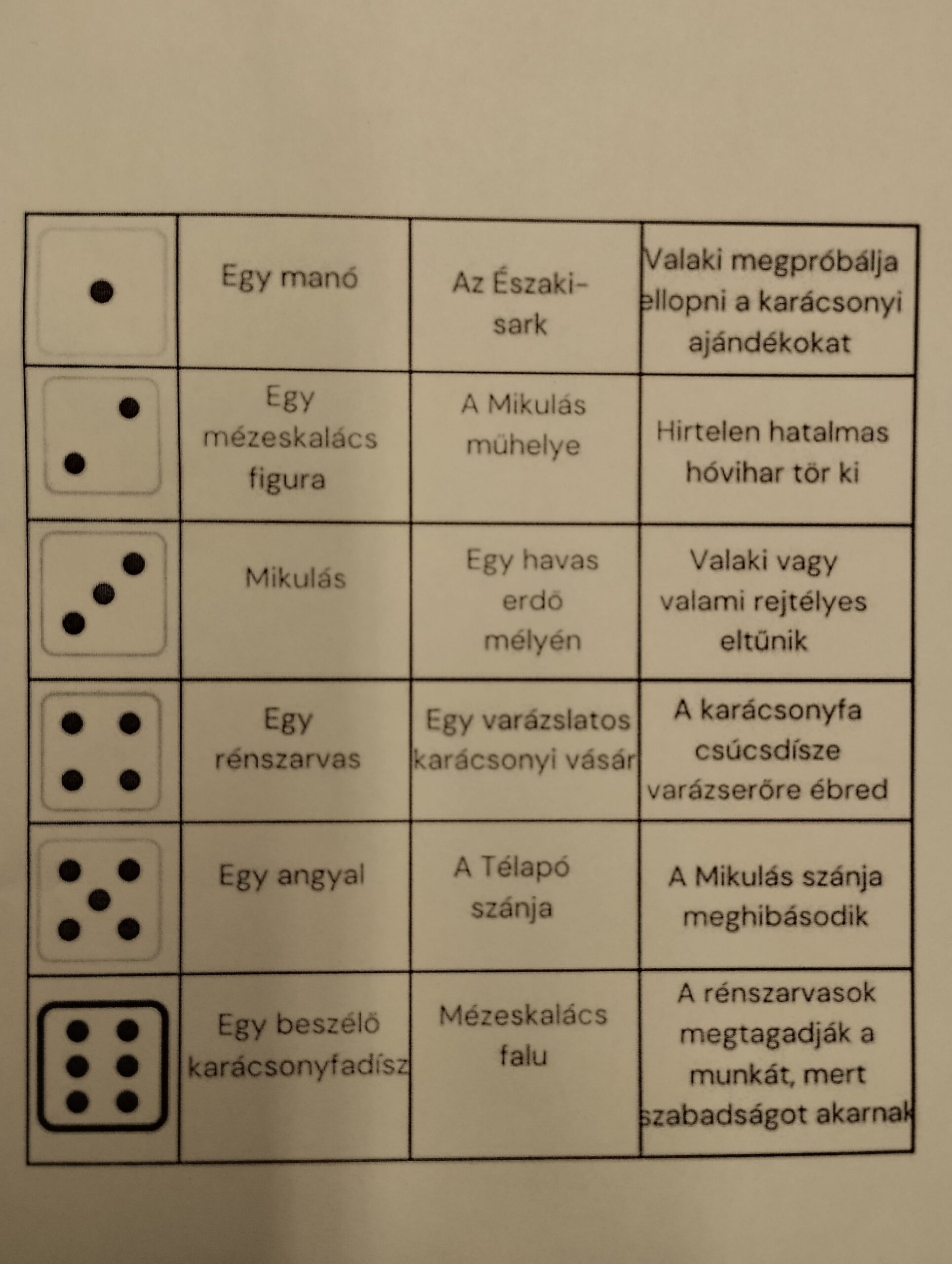 Az utolsó találkozásunk alkalmával a gyerekekkel Karácsonyi mese játékot játszottunk dobókockával.