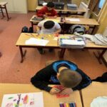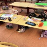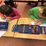 Jócselekedetek kártyákat készítettünk az első osztályos gyerekekkel. Lerajzolták a vállalásaikat. A hét leteltével megnéztük, sikerült-e a teljesítés. Elhelyeztük őket az osztály fenyőfáján. A tanulók aktívan, örömmel dolgoztak a rajzórán.