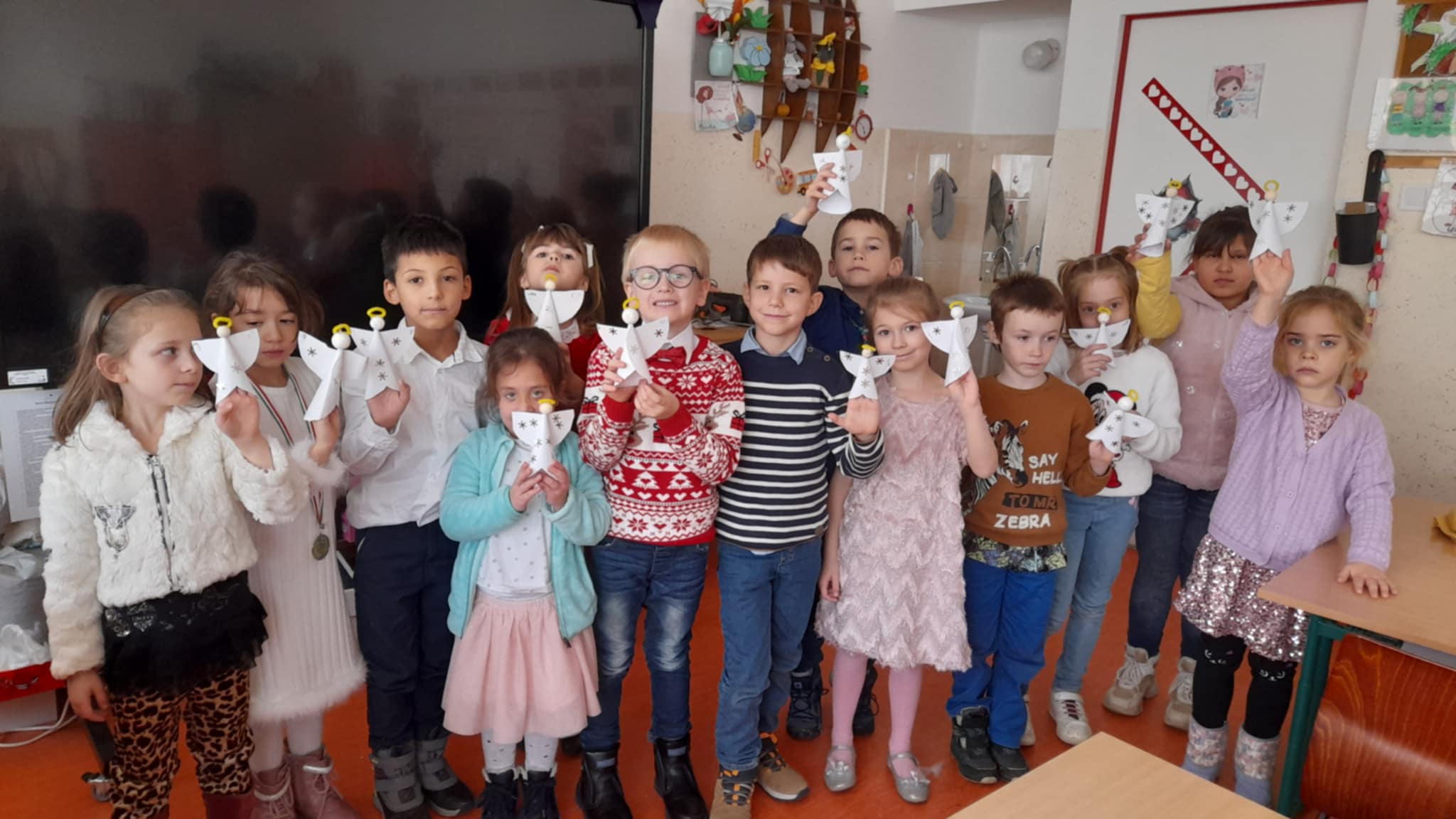 A jó cselekedeteket gyakoroltuk egész hónapban.Mikulás napján vendégül láttuk az ovisokat a közeli óvodából.Cipősdoboz akcióban vettünk részt , ezzel segítve a nehezebb sorsú családokat.Egymással is cseréltünk játékokat, mindenkinek örömet szerezve ezzel.Karácsonyi angyalkát készítettünk, kedves üzenetet írtunk bele és megajándékoztuk egymást.