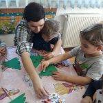A hónapban is sok mozgásalapú relaxációs gyakorlatot végeztünk a gyerekekkel. Az „Irkafirka” és a „Puha meleg, felengedek, meleg vagyok elolvadok” volt a kedvencük. Ehhez „saját élményt” is szereztünk, hiszen nagy hó esett, amiből a csoportszobában olvasztottunk és megfigyeltük az olvadás folyamatát, feltételeit. A madárkáknak madáretetőt készítettünk és eleséget gyűjtöttünk, majd kivittük az udvarunkon a fára. Utána a csoportszobából jól láthattuk, hogyan csipegetik a cinkék. Szőnyegen vadasparkot építettek a gyerekek, és abban is minden állatkát megetettek. Sokat beszélgettünk arról, hogy hogyan is védelmezhetjük télen az állatokat. A jó cselekedetek hónapja, és a közelgő ünnepre készülve, ajándékot készítettünk a községünk Biztoskezdet gyermekház lurkóinak.