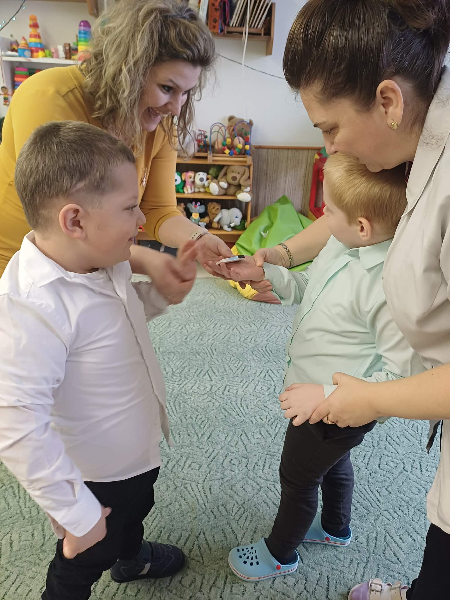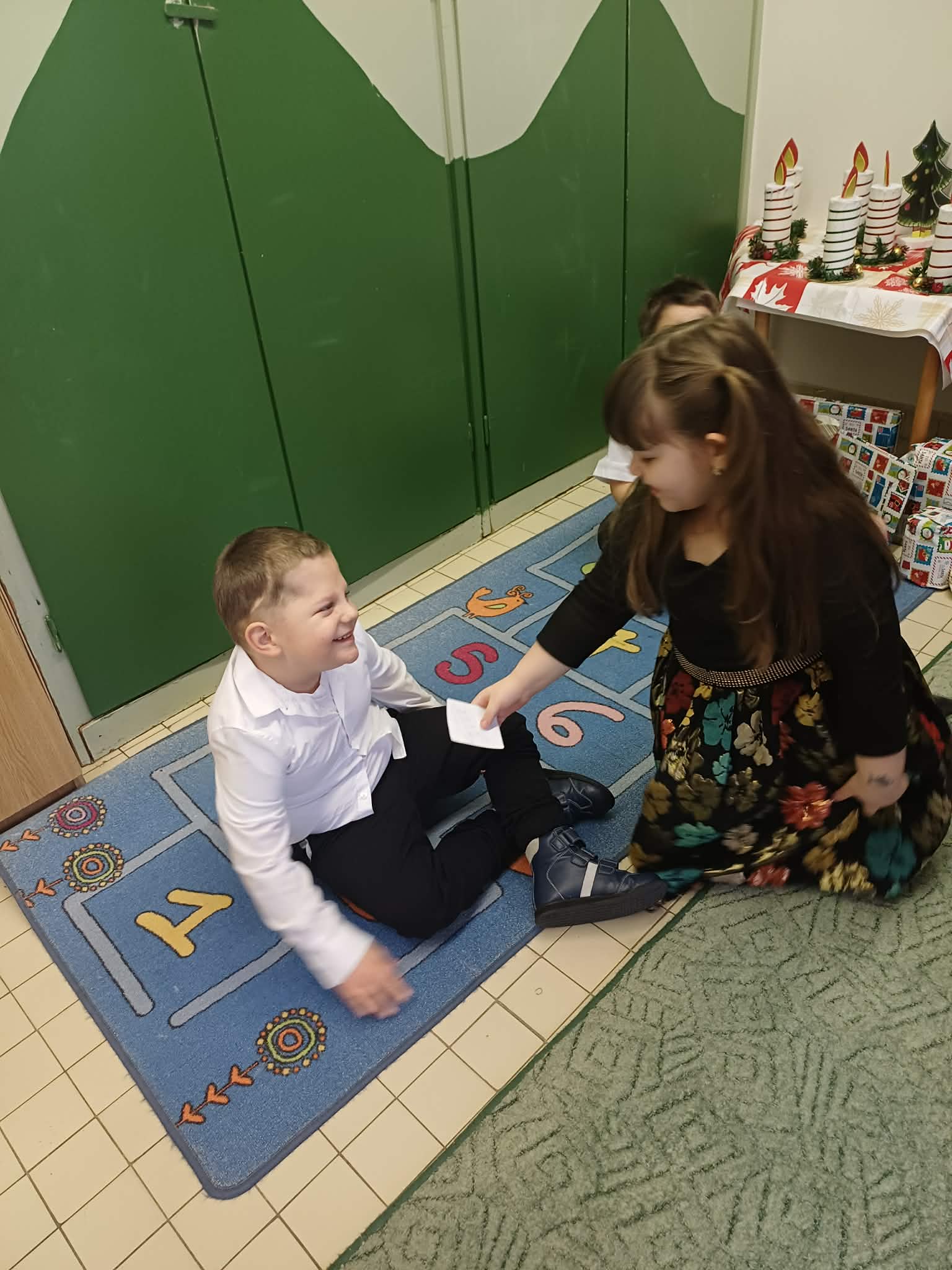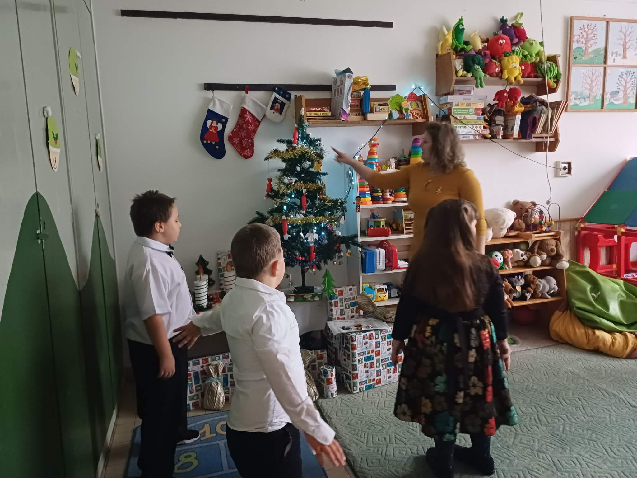 Az ajándékozás során a gyermekek nagy örömmel vettek részt a tevékenységben. Látható volt, hogy az ajándék átadása legalább akkora örömet okozott számukra, mint annak átvétele. A zenei aláfestés nyugodt, meghitt légkört teremtett, amely elősegítette az érzelmi ráhangolódást. A gyermekek figyelmesen fordultak egymás felé, türelmesen kivárták a sorukat, és örömmel ajándékozták meg a kijelölt társukat.