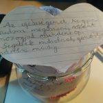 A gyerekek az idén kezdték a fogalmazás alapjait és a levélírásban még nincs tapasztalatuk. Így pár gondolattal, mondattal pórbálták számukra a legfontosabb gondolatot megfogalmazni, számukra mit ad a Boldogság Program. Egy szép vázába tették a szív alakú leveleiket, elolvasva szinte nem is volt 2 hasonló; izgalmas, mókás, vicces feladatok, amik a tanulást is segítik, egészség megőrzése, mozgás fontossága, segítségadás másoknak, elfogadni a másik embert, a rosszban meglátni a jót. Élményt ad, szeretetet ad, bátorságot, kevesebb veszekedés van az osztályban. Megbocsájtani nehéz, azt is segített megtanítani.