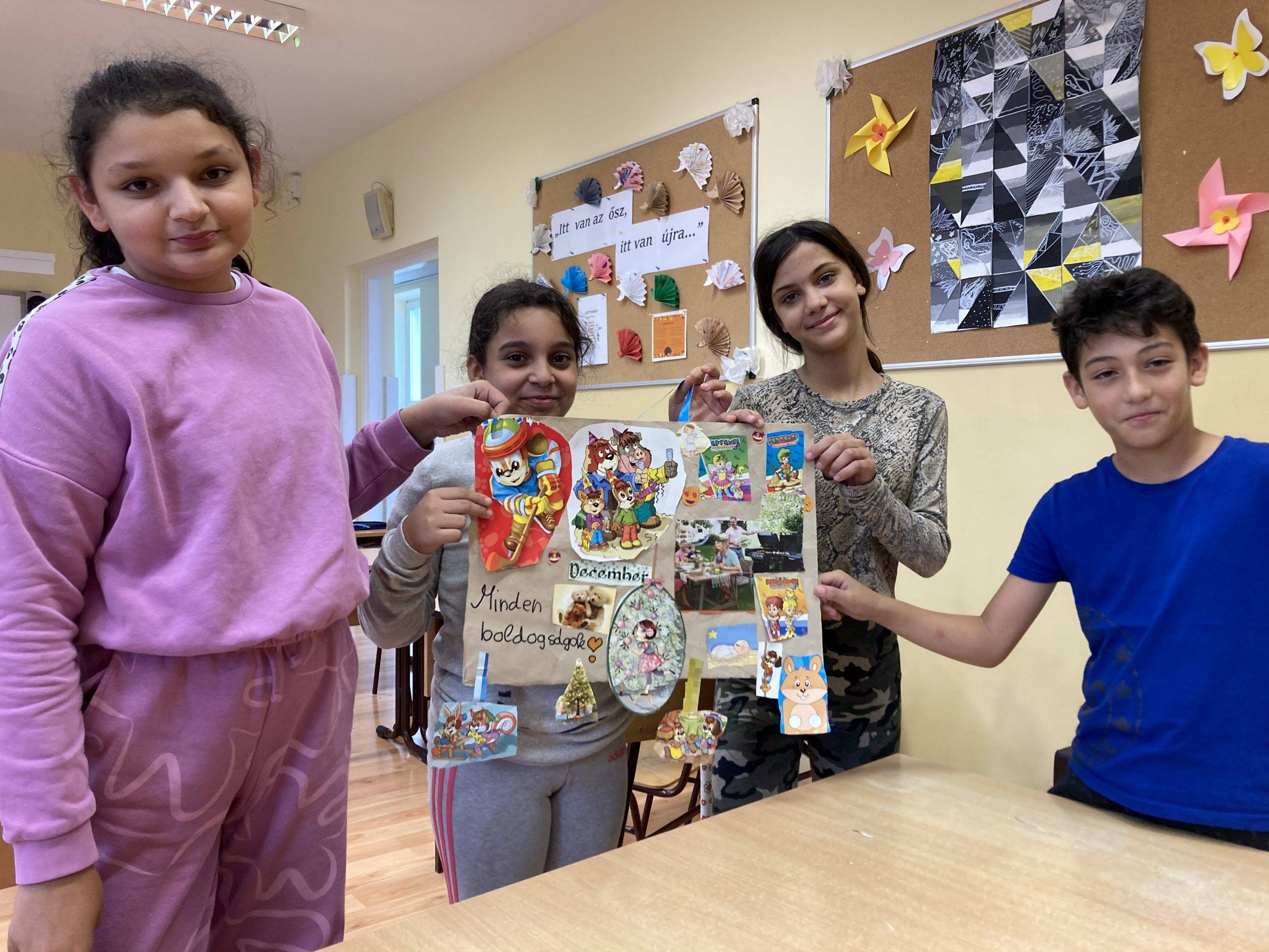 Az ötödik osztályosok a pozitív megerősítések jegyében boldogító montázsokat készítettek, amelyekre olyan újságból kivágott képek kerültek, amiktől pozitívabban szemlélhetjük a mindennapjainkat.