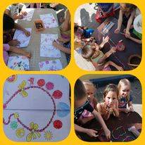 A „boldogságfűzért” nem csak színeztük, hanem felaprított szívószálból gumira fűzve nyaklánc és karkötő is készült. Haza vitték, hogy örömet szerezzenek vele otthon. Természetesen egymásnak is készítettek barátságkarkötőt.
