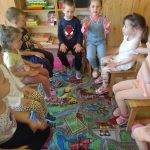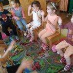 A foglalkozást egy relaxációval kezdtük. A relaxáció után a témához tartozó mesét hallgatták a gyerekek, Boldog erdő – Kerekerdő címmel. A mese után pedig eljátszottuk a Szeretfolyosó játékot, mégpedig úgy, hogy azt mondtuk: jó, hogy a csoportunk tagja vagy. Ezután seprűtánc következett, ami különösen tetszett a gyerekeknek. A tánc után leültünk pár percre a szőnyegre és megpróbáltam összefoglalni nekik, mit jelent a boldogság, természetesen az ő nyelvükön, szintjükön.
