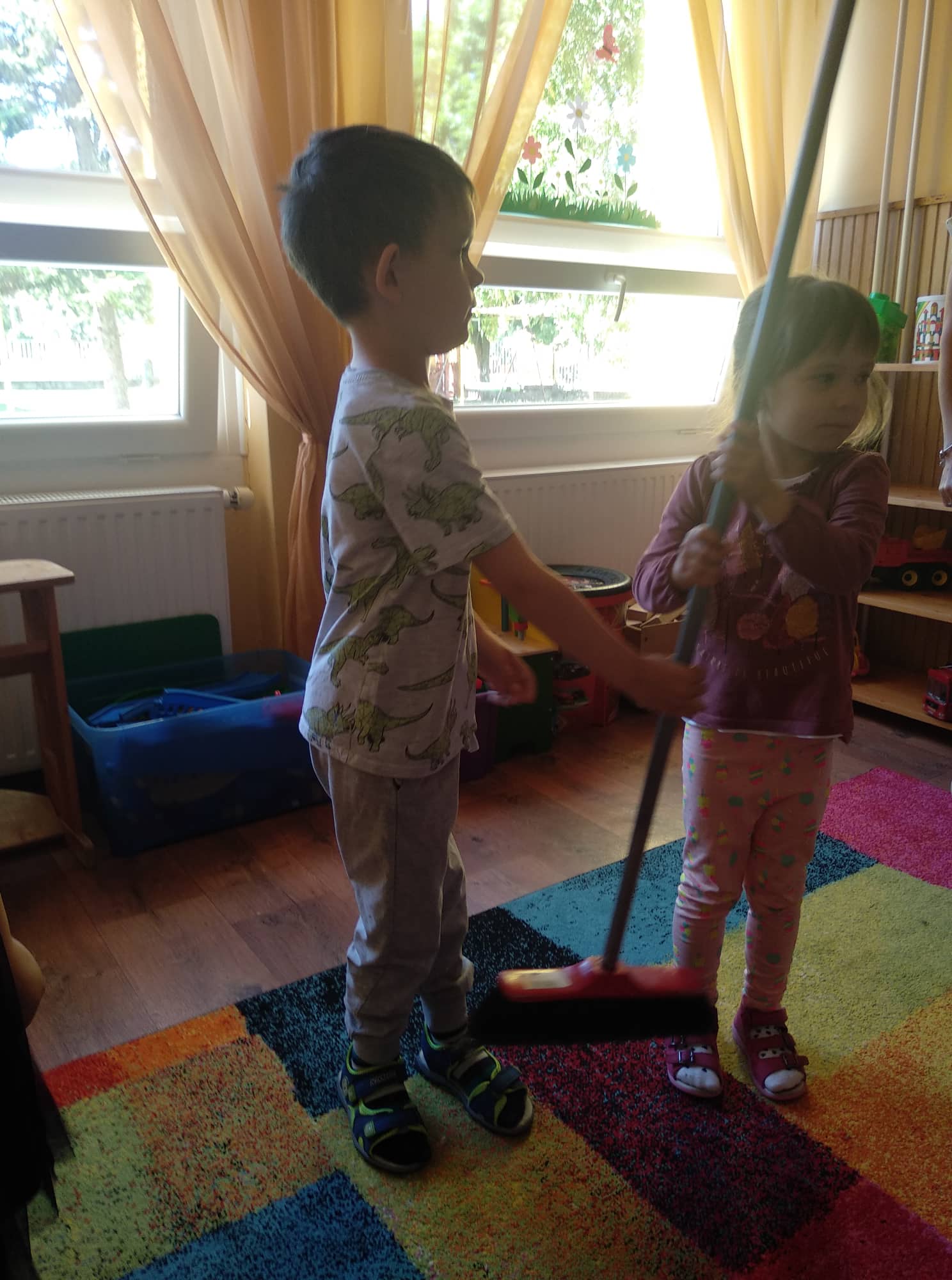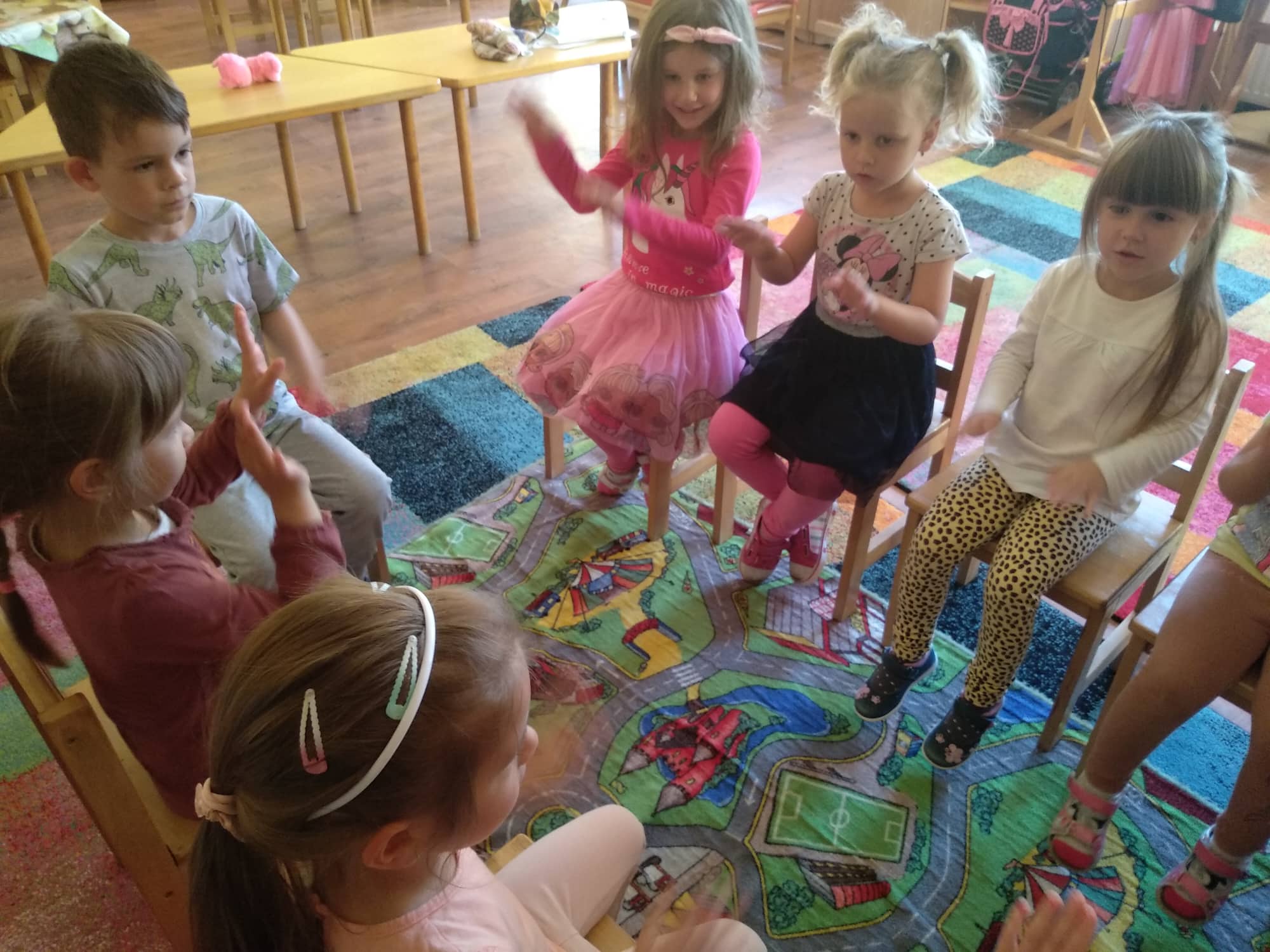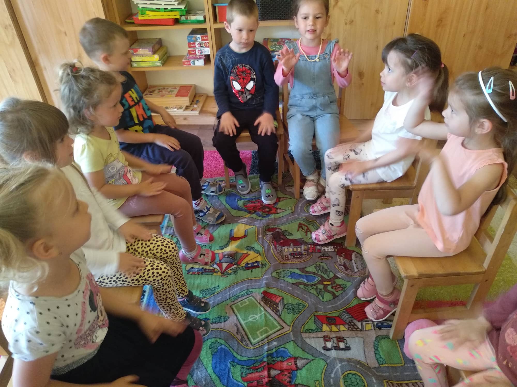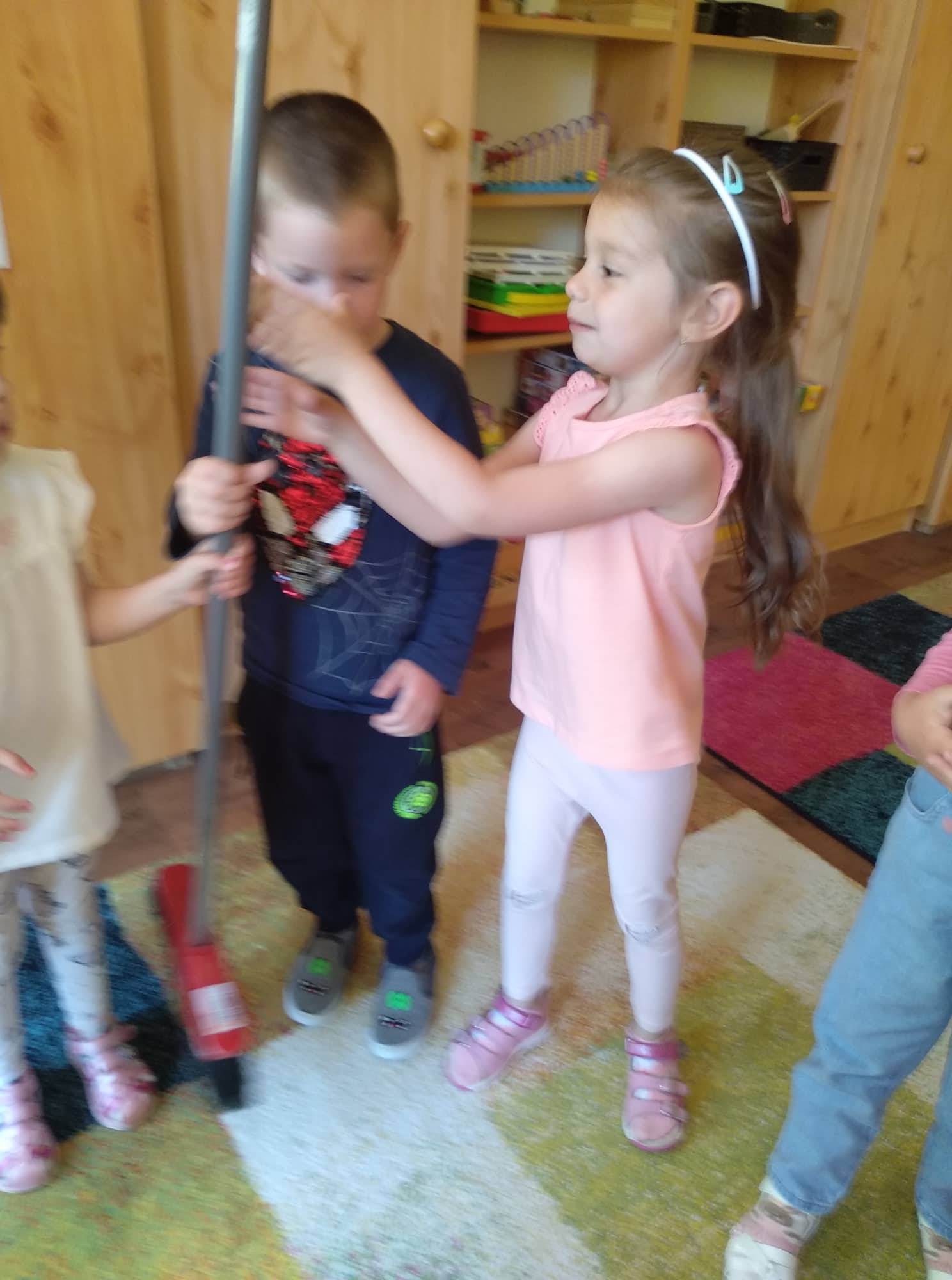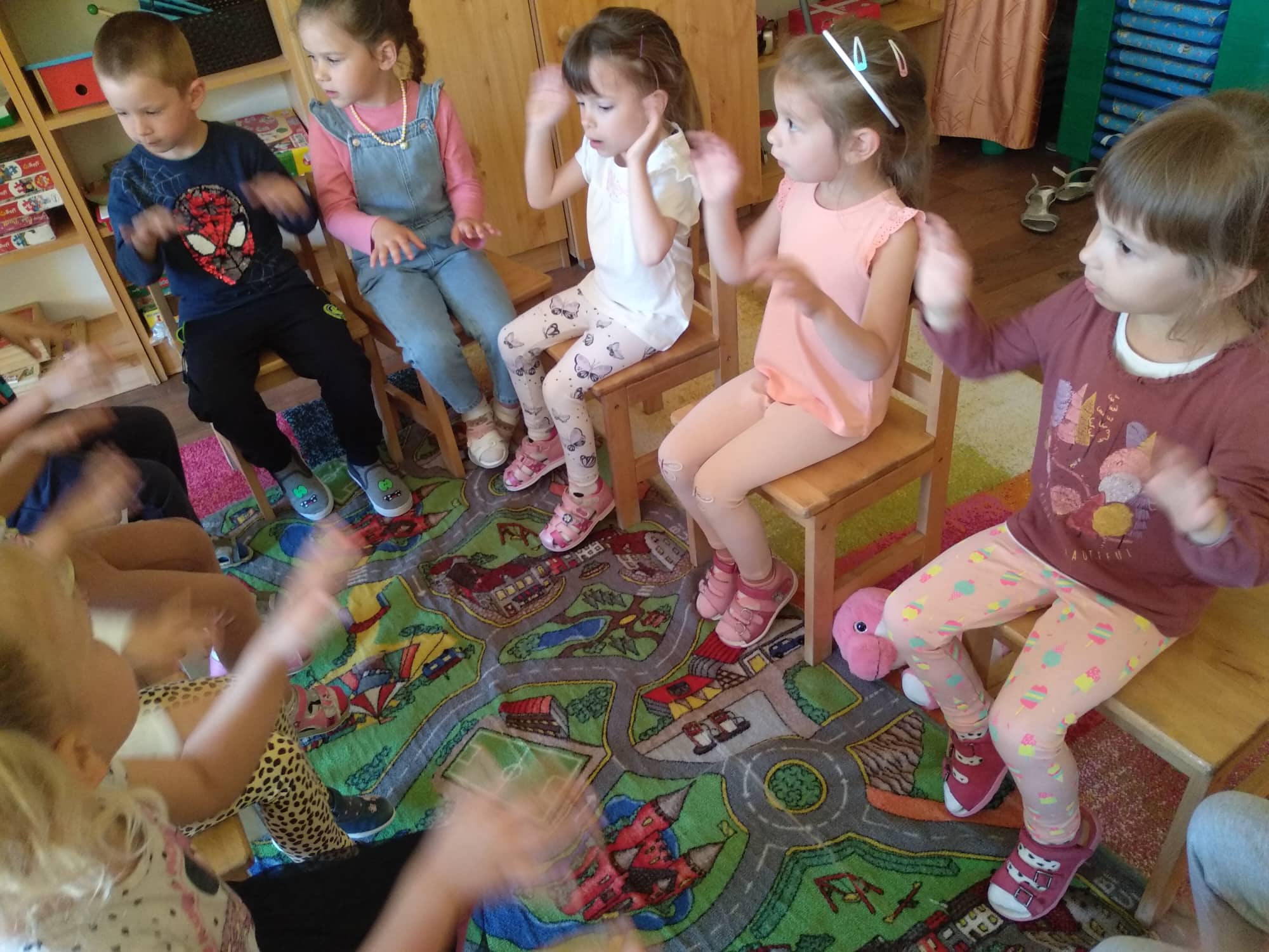 A foglalkozást egy relaxációval kezdtük. A relaxáció után a témához tartozó mesét hallgatták a gyerekek, Boldog erdő – Kerekerdő címmel. A mese után pedig eljátszottuk a Szeretfolyosó játékot, mégpedig úgy, hogy azt mondtuk: jó, hogy a csoportunk tagja vagy. Ezután seprűtánc következett, ami különösen tetszett a gyerekeknek. A tánc után leültünk pár percre a szőnyegre és megpróbáltam összefoglalni nekik, mit jelent a boldogság, természetesen az ő nyelvükön, szintjükön.