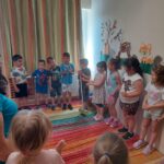 A fenntartható boldogságot feldolgoztuk a Boldogerdő – Kerekerdő mesével és a gyerekek elvitték a ,,gyöngyszemeket” magukkal. Jártunk seprűtáncot, de nem kieséssel, hanem egymás segítésével. Hallgattuk Bagdi Bella Jobb veled a világ című dalát.