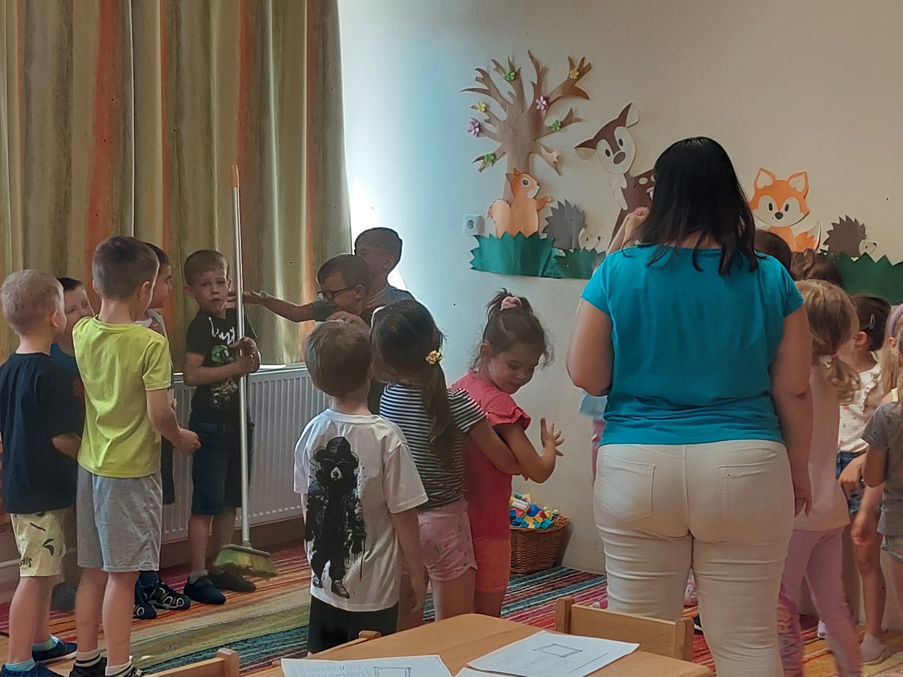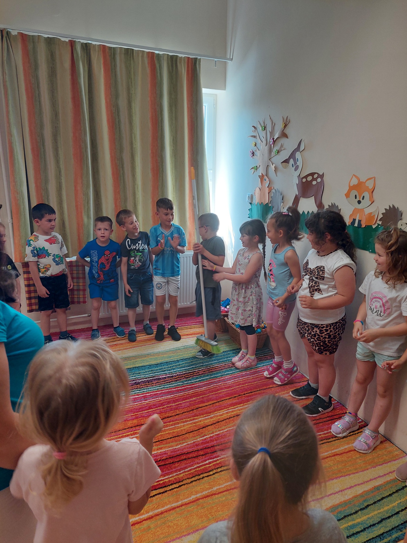 A fenntartható boldogságot feldolgoztuk a Boldogerdő – Kerekerdő mesével és a gyerekek elvitték a ,,gyöngyszemeket” magukkal. Jártunk seprűtáncot, de nem kieséssel, hanem egymás segítésével. Hallgattuk Bagdi Bella Jobb veled a világ című dalát.