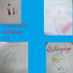 A különleges tanév online hónapjaiban továbbra is -ha nem is személyesen- foglalkoztunk a Boldogságóra témaköreivel. A gyermekekkel chetes órákon beszéltük meg mit jelentett számunkra ez a tanév. Felidéztük , hónapról, hónapra a különböző témákat, az órákhoz kapcsolódó élményeket. Meghallgattuk a hónap dalát. A boldogságról , a jó időről a gyermekeknek a lufi jutott eszébe, ami szabadon szárnyalhat, szállhat , bárhova eljuthat. S úgy döntöttek egy lufi formába rajzolják le a tanév legjobb, legboldogabb élményeit.