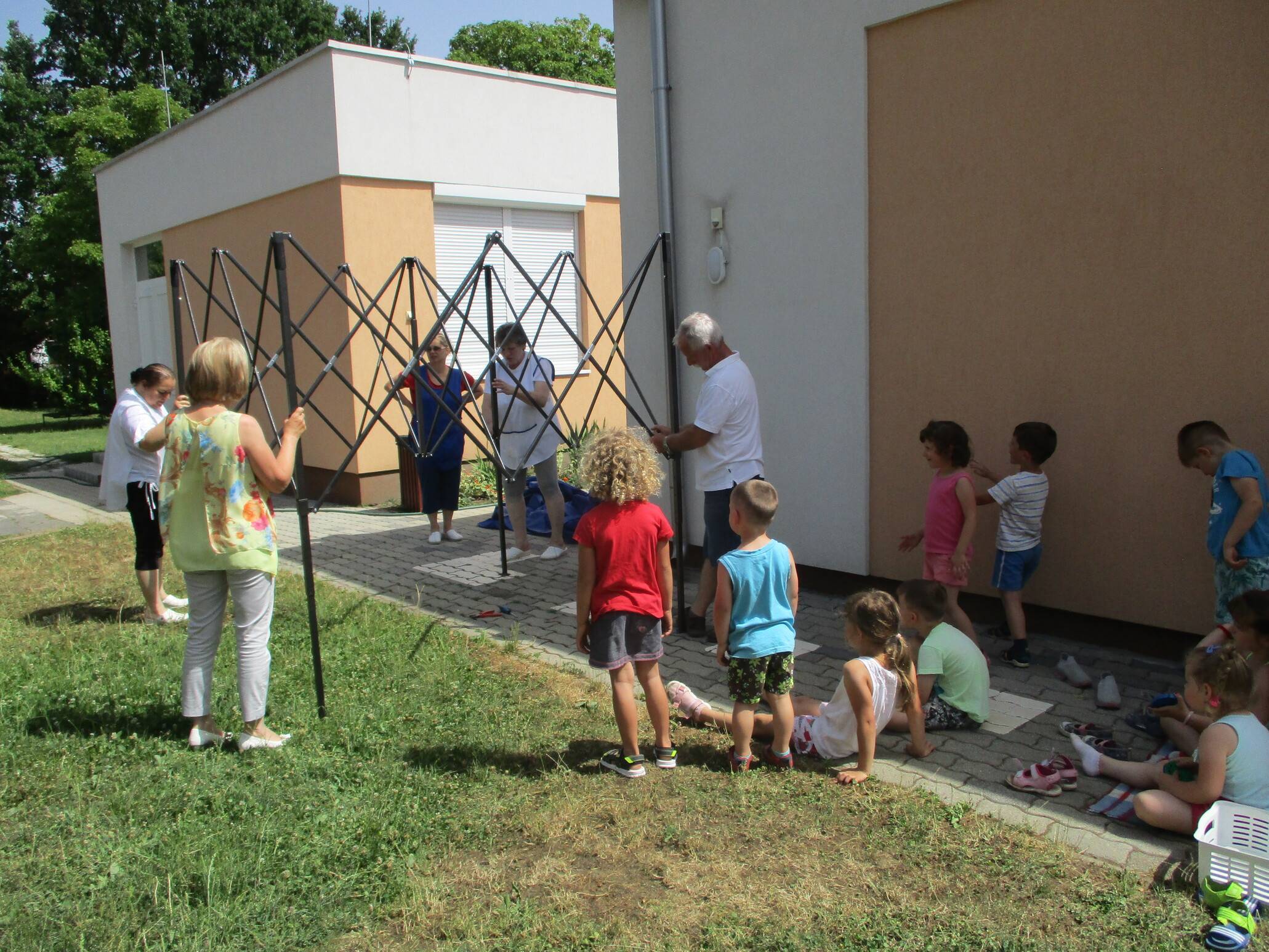 Mivel már nyári élet van az óvodában, az udvaron tartottam meg az utolsó foglalkozást. A csoportomba járó gyerekekkel félre vonultunk egy árnyékos helyre és beszélgettünk majd képek segítségével felidéztük az emlékeket. Egy – egy kis kép emlékeztette őket arra, hogy mit is csináltunk akkor, amikor a kép készült. A legkedvesebb téma a gyerekek körében a hála feldolgozása volt. Kérték, hogy majd amikor a saját csoportunkban leszünk, akkor is folytassuk a hagyományt és jutalmazzuk azt a kis gyereket azzal, hogy a hála párnára ülhet, aki azon a napon valami jót cselekedett. Jót nosztalgiáztunk a gyerekekkel. Ezután elmeséltem „A boldog ember inge” című mesét és kiosztottam mindenkinek a képet az ingről, amit kiszínezhettek. Ez a mese és gondolat ihlette a gyerekeket arra, hogy valamennyien azt érezték, az a kis ruha, vagy blúz, póló az „boldog ruha”, ami éppen rajtuk volt. Ez adta az ötletet, hogy megkérdeztem, ha már rajtuk ilyen ruha van, mi az, ami boldoggá teszi őket, miért vagy mitől boldogok. Lehetőségem volt rá, hogy gyorsan lejegyzeteljem és már meg van az ötletem, hogyan fogom ezt a későbbiekben felhasználni és beépíteni a boldogság témák feldolgozása során. Néhány gyermekszáj, amit mondtak a gyerekek. ” Attól vagyok boldog, hogy itt vagytok velem és megöleltek engem!”. ” Azért vagyok boldog, mert 5 éves vagyok!” Ha együtt elmegy a család valahová!” ” Azért vagyok boldog, mert nincs itt a világ vége!” Ezután jött az én meglepetésem, amikor közöltem a gyerekekkel, hogy felértünk a Boldogság-vár tetejére, mivel mindenki ügyes volt és minden feladatot együtt teljesítettünk. Ezen a napon lett felállítva az óvodában a homokozó fölé az új sátor. Az egyik kisfiú megjegyezte, ez a mi boldogság várunk, mert árnyékot ad nekünk, amikor játszunk. Ettől szebb végszó nem is lehetett volna a téma lezárására. Foglalkozásaink, tevékenységeink elérték a céljukat! Szeptembertől folytatjuk az elkezdett munkát!