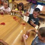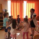A hónap témáját, a fenntartható boldogságot beszélgető körrel indítottam. Beszélgettünk az egész nevelési évben megélt boldogságórákról, felidéztük, hogy milyen játékokat játszottunk ennek keretében. Mindenki elmondhatta, hogy neki melyik játék, feladat volt a kedves számára. A témát többféle feladattal dolgoztuk fel. Az egyik a fonalszív volt. Minden gyereknek tetszett ez a technika, szívesen készítették, közben örömmel mondták, hogy ezt otthon odaadják anyának. Majd ráhangoló feladatként elénekeltük és eljátszottuk a Dombon törik a diót c. énekes játékot, ezt követően pedig a Mese-játék c. feladatot valósítottuk meg. A gyerekek figyelmesen hallgatták végig a mesét, ügyesen mondókáztak, énekeltek közben. A végén a kérdéseimet feltettem nekik, amelyre ügyesen, odafigyelve tudtak válaszolni. A boldogságóra zárásaként meghallgattuk a hónap dalát, ami tetszett a gyerekeknek.