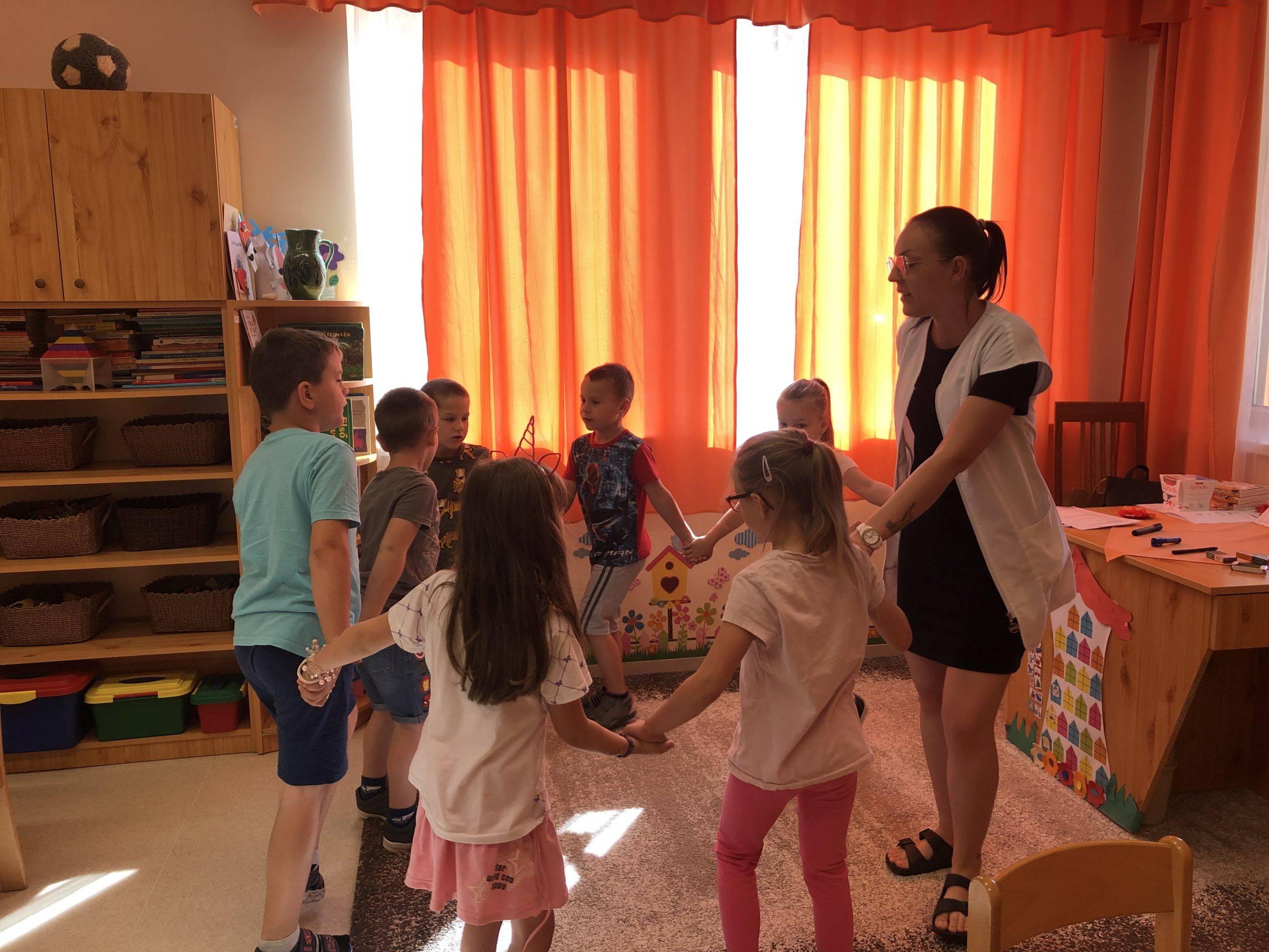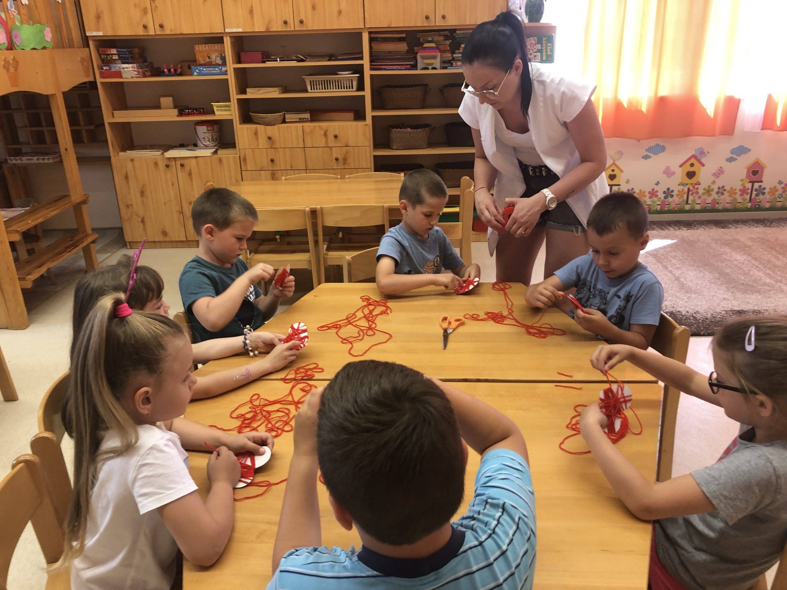 A hónap témáját, a fenntartható boldogságot beszélgető körrel indítottam. Beszélgettünk az egész nevelési évben megélt boldogságórákról, felidéztük, hogy milyen játékokat játszottunk ennek keretében. Mindenki elmondhatta, hogy neki melyik játék, feladat volt a kedves számára. A témát többféle feladattal dolgoztuk fel. Az egyik a fonalszív volt. Minden gyereknek tetszett ez a technika, szívesen készítették, közben örömmel mondták, hogy ezt otthon odaadják anyának. Majd ráhangoló feladatként elénekeltük és eljátszottuk a Dombon törik a diót c. énekes játékot, ezt követően pedig a Mese-játék c. feladatot valósítottuk meg. A gyerekek figyelmesen hallgatták végig a mesét, ügyesen mondókáztak, énekeltek közben. A végén a kérdéseimet feltettem nekik, amelyre ügyesen, odafigyelve tudtak válaszolni. A boldogságóra zárásaként meghallgattuk a hónap dalát, ami tetszett a gyerekeknek.