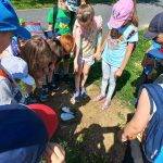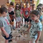 Június hónap témája a “Fenntartható boldogság”. A téma feldolgozását a “Napra forgó a napraforgó” relaxàciós gyakorlattal kezdtük. Körbe álltunk a szőnyegen és mindenki elmondhatta, hogy mi okoz örömet számára, mi teszi boldoggá. Aki mondott valamit, gombot tett a kör közepére, végül egészen nagy kupac gomb gyűlt össze a szőnyegen. Ezt követően „megépítettük” a „szeretetfolyósónkat”, melyen csukott szemmel kellett áthaladni, teljesen megbízva a társakban. Elmeséltem a hónap meséjét a Bezzeg Andrea: Boldog erdő-Kerekerdőt, a mese végén megbeszéltük a mese mondanivalóját és meghallgattuk a hónap dalát Bagdi Bella: Jobb veled a világ című dalát. Kihasználtuk a jó időt és kirándulást tettünk a közeli Csónakázó-tóhoz.