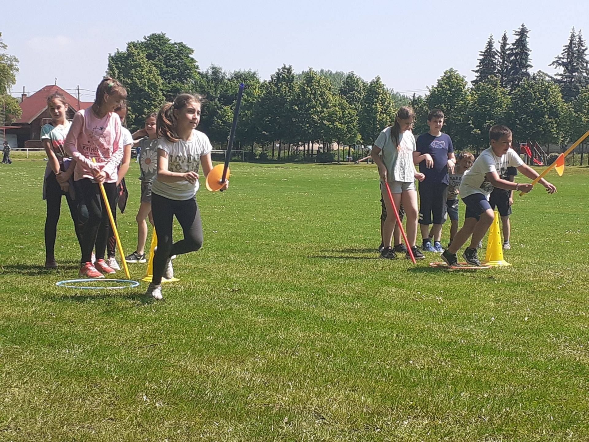Tanítványaimmal boldogan oldottuk a játékos feladatokat a szabadban.