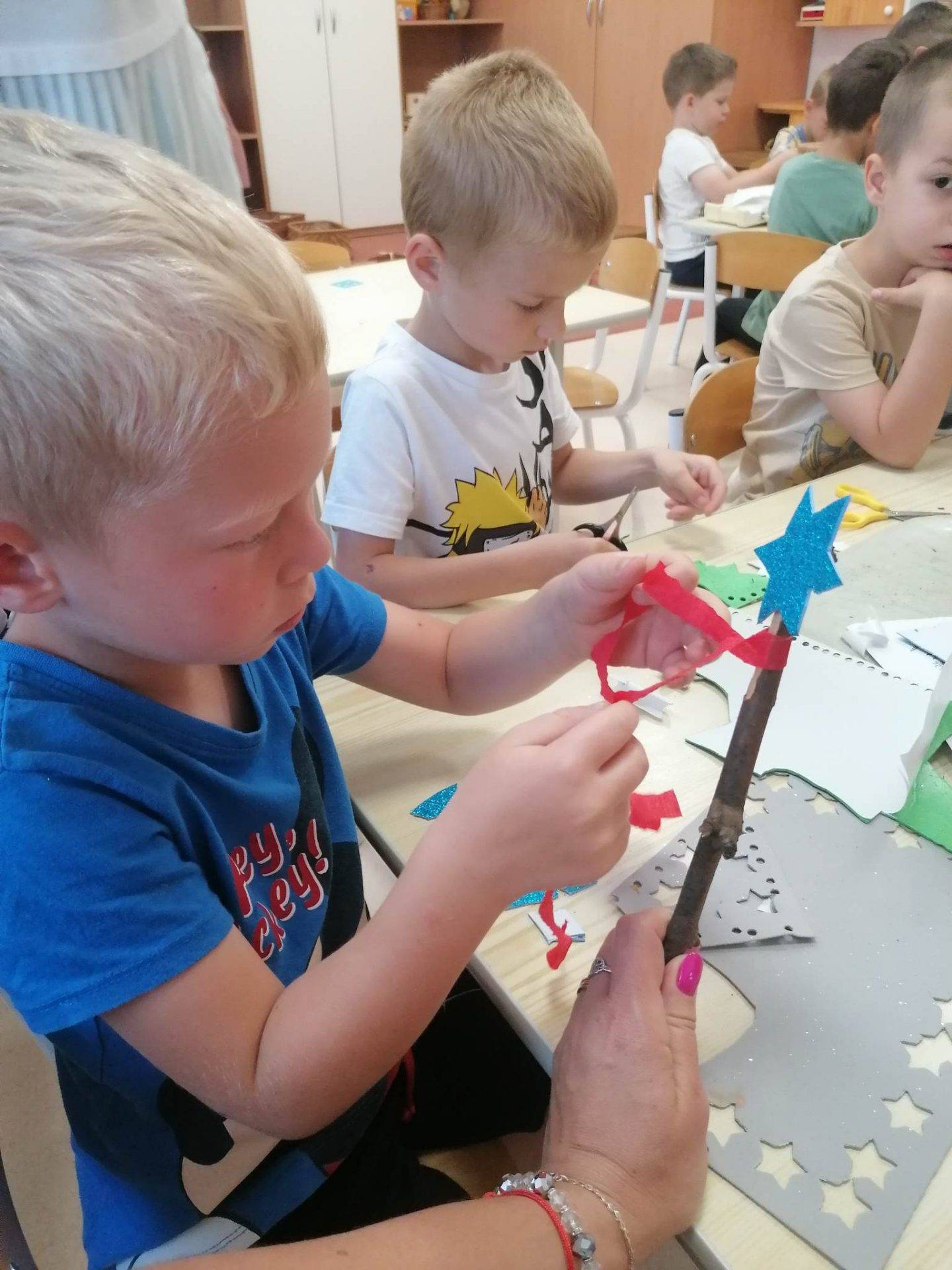 Ez a hónap nemcsak a nevelési év utolsó hónapja, hanem a Boldogságóra Program utolsó hónapja is egyben. Felidéztük a gyerekekkel eddigi kilenc hónap témáit, és beszélgettünk, hogy ki hogyan tudta alkalmazni mindennapjaiban. Boldog Nyár Varázspálca feladatot választottuk ki a gyerekekkel, nagyon tetszett nekik, mert mindenki megkereste a saját kis „csoda varázspálcáját”.