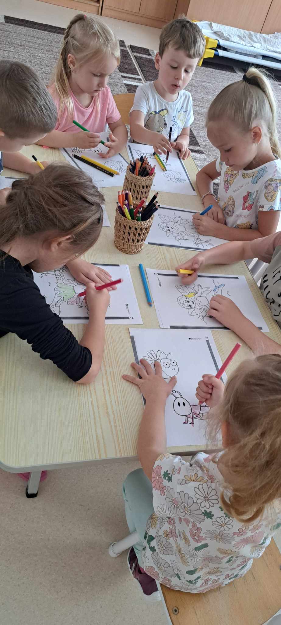 A „Fenntartható boldogság” hónapban felidéztük boldogságóráink témáit. Visszaemlékezéseinkhez segítségemre voltak havi beszámolóink, illetve a boldogságóráinkról készített fotók. Nagy örömmel nézegették, magukat a képeken, és elevenítették fel élményeiket. Majd a Katica elveszett pöttyei” című mesével folytattuk a boldogságóránkat. Beszélgettünk arról, hogy „Miért lehetett mérges Katica”, mit tehetett volna másképp. Az óránk befejezésként kiszínezhették a mese szereplőit.