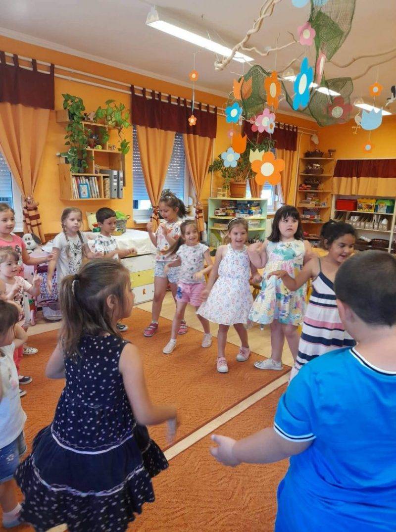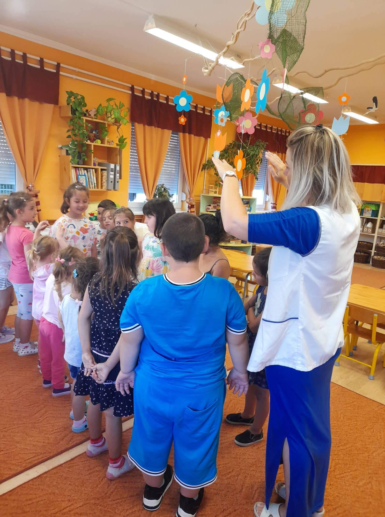 A tevèkenysègeket relaxàciós gyakorlattal kezdtük, ahogyan mindig is. „Napra forgó a napraforgó” gyakorlattal. Tèri tàjèkozódó kèpessègük, testèmàjuk, együttmûködô kèpessègük fejlôdhetett. Közösen memorizàltuk Bagdi Bella: Jobb veled a vilàg címû dalàt, melyre együtt tancoktunk vidàman. Megalkottuk sajàt „szeretetfolyosónkat” melyen àthaladhattak csukott szemmel teljes biztonsàgban. Megismerkedtünk a boldogsàgfûzèrrel. Egymàs felè szeretetünket kinyilvànítottuk. Boldog Macinkat ès a boldogsàgban úszó halakat „megrajzoltuk” . A tevèkenysègsorozatot közös èneklèssel zàrtuk.