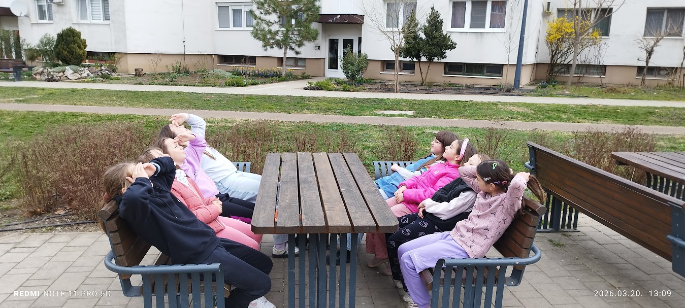 A boldogság világnapja alkalmából boldogság-fokozó játékokat játszottunk a szabadban: Öt érzékszerv séta, természet-mandala, boldogság-színvadászat, felhő-mozi, ölelhető fa