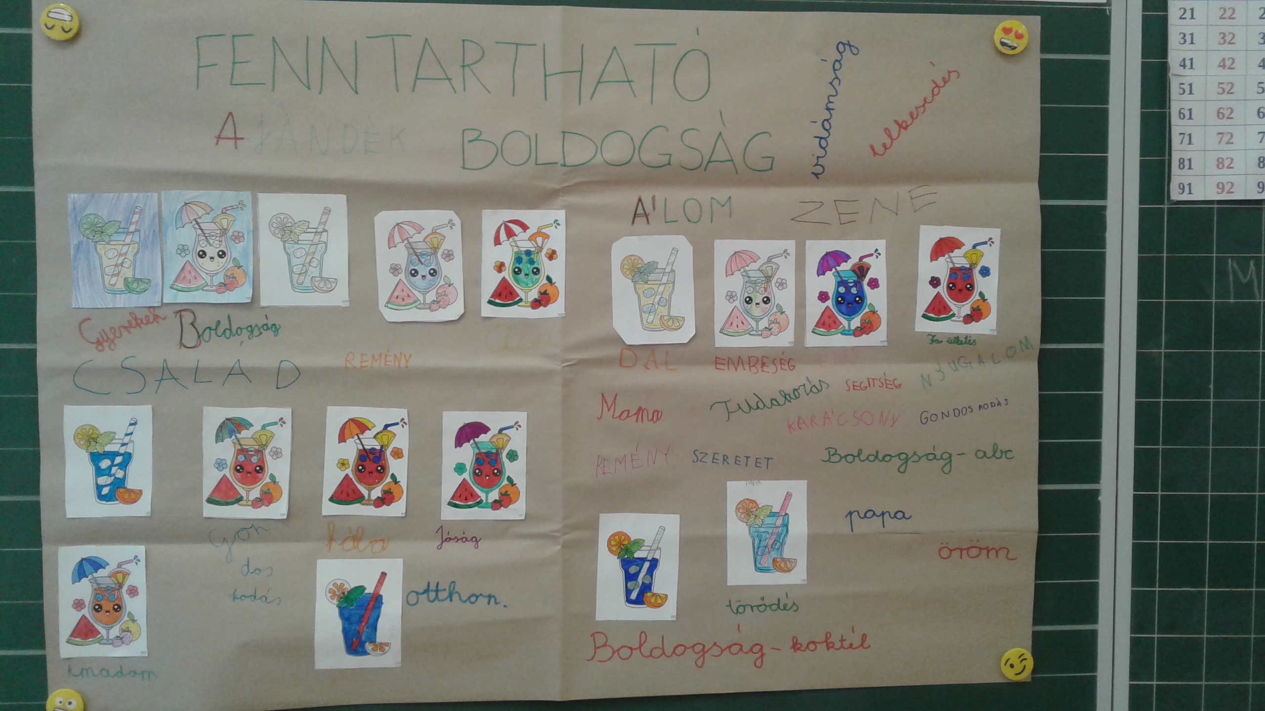 büszkeség. Ezek az érzelmek építik a személyes erőforrásokat: ilyenkor szociálisabbak vagyunk, nyitottabbak a felfedezésre és a próbálkozásokra, kreatívabbá, leleményesebbekké válunk, jobban kezeljük a nehézségeket, adaptívabban küzdünk meg. Ilyen pozitív tartalmakat gyűjtöttek a gyerekek a BOLDOGSÁG-ÁBÉCÉ feladatban.
