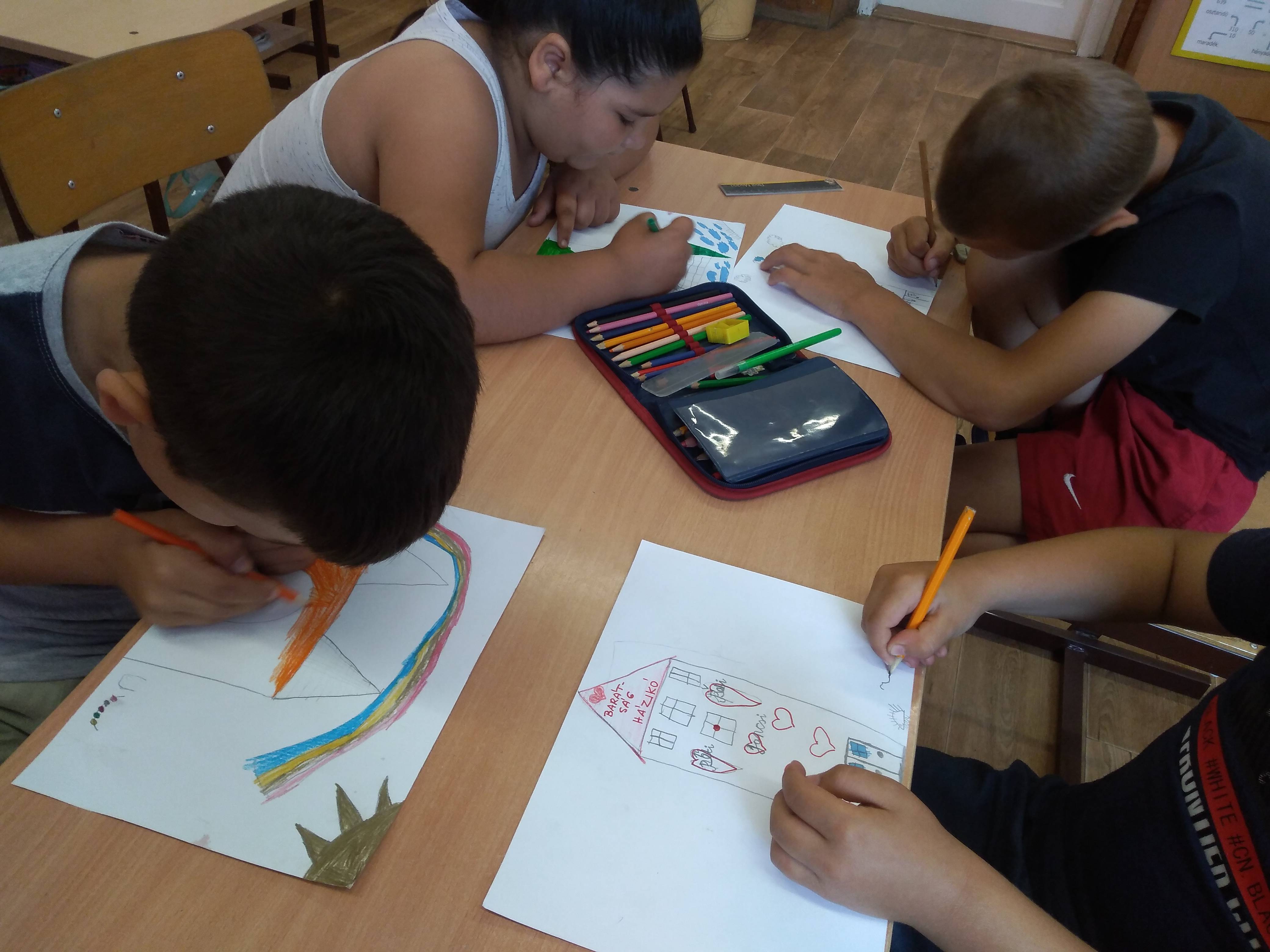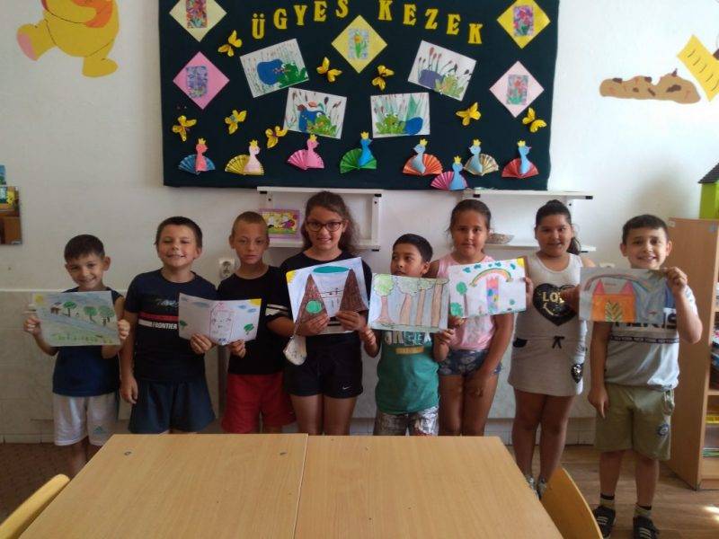 A tanév utolsó rövid hónapja sok örömöt adó élménnyel telt. Kirándultunk, vetélkedtünk, sokat játszottunk a szabadban: jó volt együtt lenni. Az elmúlt boldogság órákon készült képeket nézegetve felidéztük, mely témákról beszélgettünk, kinek mi tetszett a legjobban. A „Repülj velem” című dal Boldogság országába repített. Mesehallgatás után beszélgettünk és elkészültek a rajzok is. Vidáman mondtuk együtt a versike utolsó sorait: ” Ha mindig együttműködünk, ha együtt mozgunk és nevetünk, boldogok csak így leszünk!”