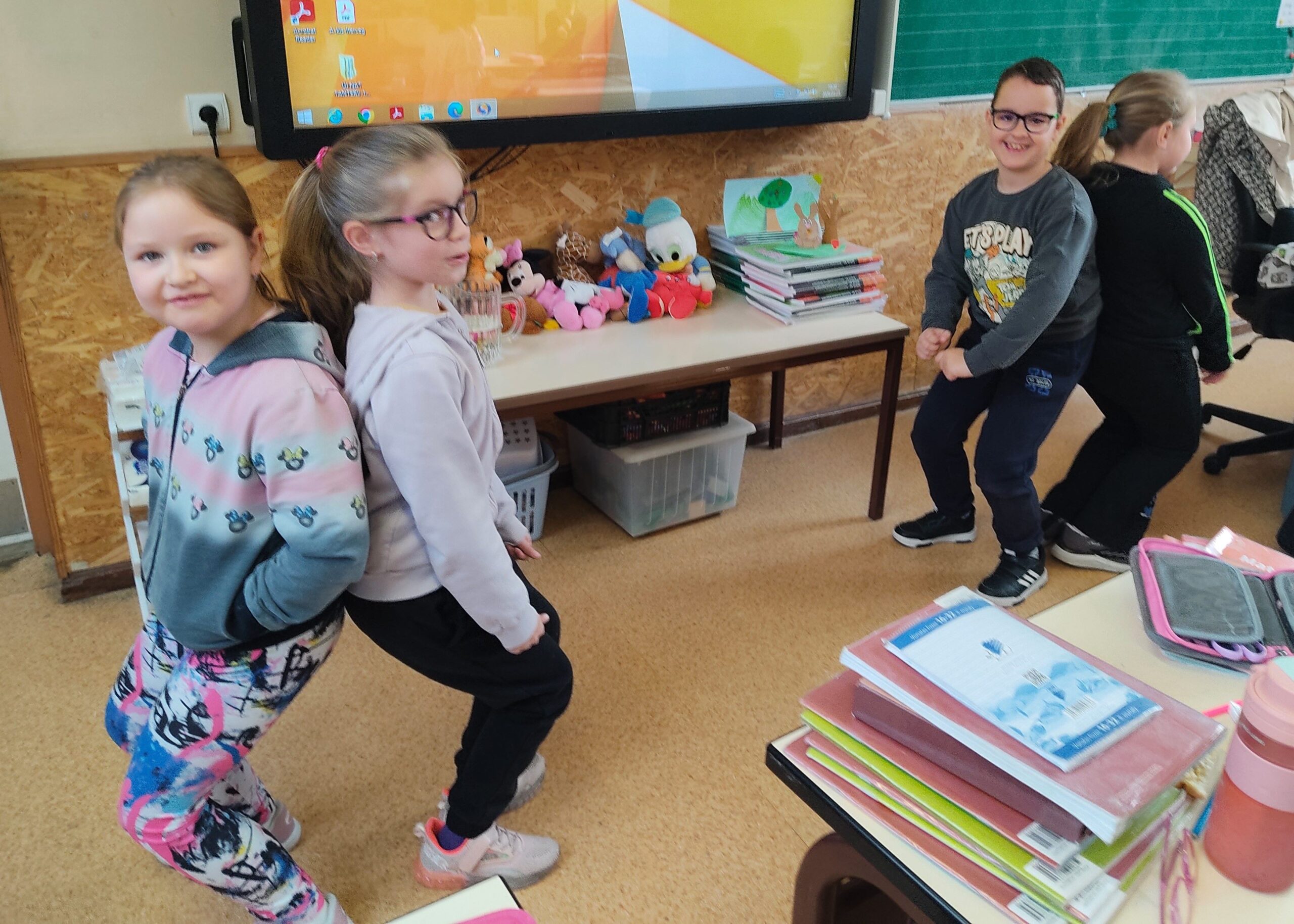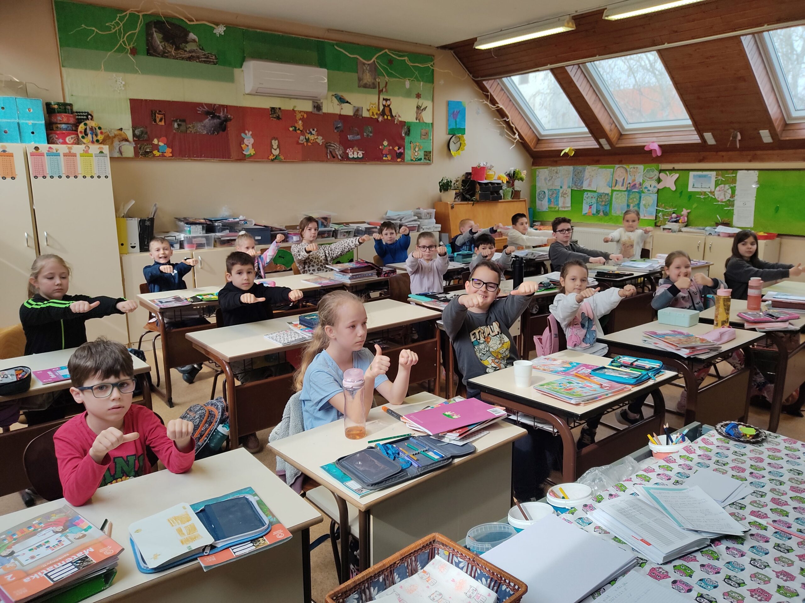 A Boldogság világnapján a boldogságfokozó stratégiák közül a „mérleghinta” volt a kedvencük, mindenki szék nélkül szerette volna kipróbálni, milyen érzés egymást támasztva a levegőben ülni. Eleinte nehéz volt optimistán gondolkodniuk, de egy félig töltött pohár jó példa volt megmutatni, hogy ez a pohár félig tele van vagy ez a pohár félig üres. Nem mindegy, hogyan állunk hozzá egy-egy bosszantó dologhoz. Céljaikat egy zöld színű pohárba, a jó cselekedeteteket piros színű pohárba tették bele. Az agyféltekét összehangoló mozdulatokat több óra elején is gyakoroltuk, így egyre kevesebben adták fel. Jól jött a zseblámpás gyakorlat, milyen fókuszálni, figyelni egy dologra, mint sötétben a zseblámpa fényére, minden mást kizárunk.
