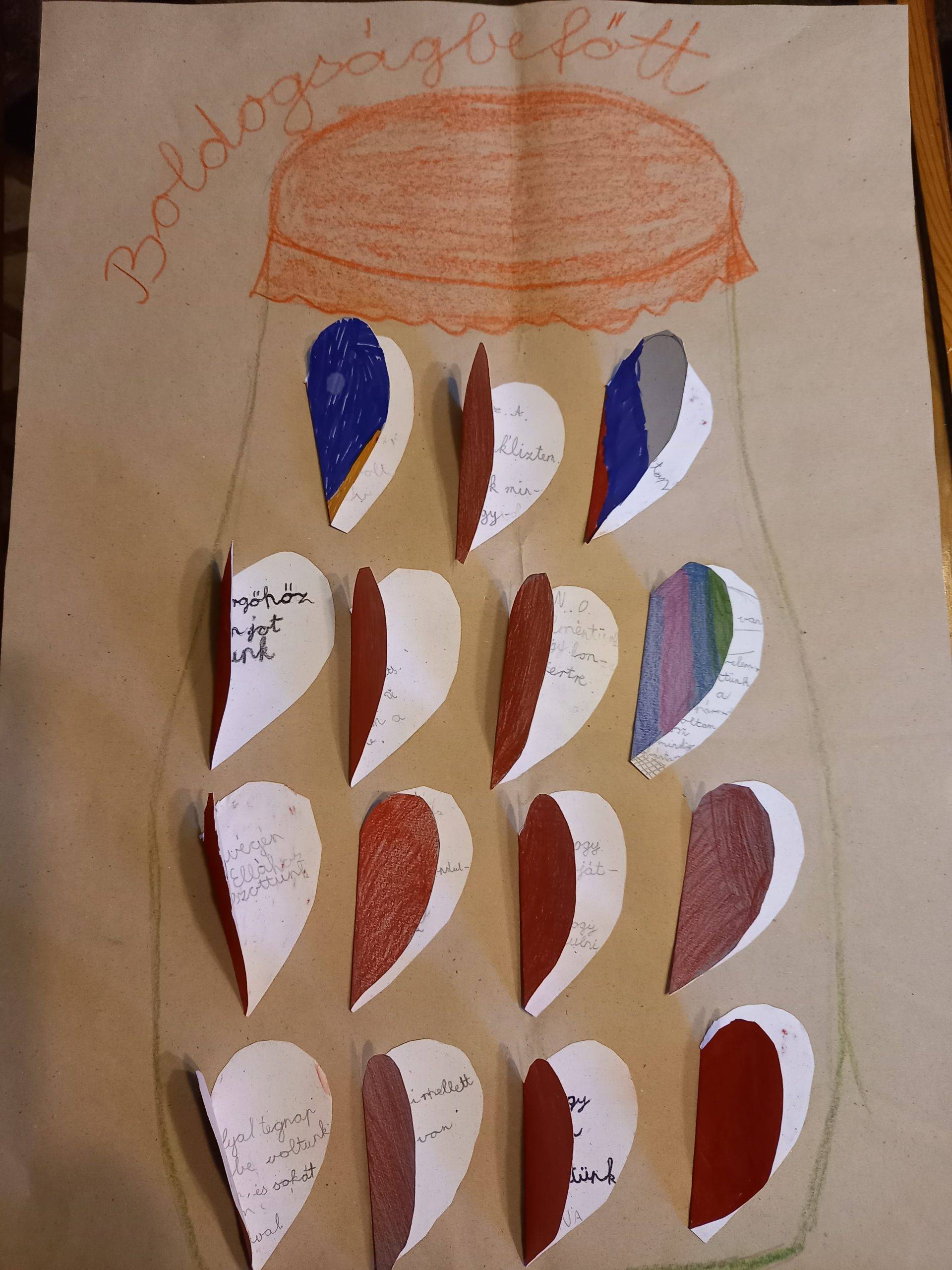 A téma feldolgozása során a gyerekek nagyon aktívak voltak. Sok dolgot megemlítettek, ami örömet okozott nekik ebben a tanévben. Soroltak egészen konkrét élményeket, de többen voltak, akik arról írtak és beszéltek, hogy jó, hogy több barátjuk van, mint az elmúlt évben, vagy, hogy kibékültek valakivel. A „befőttet” megőrizzük, és következő tanévben kitesszük osztályunk falára.