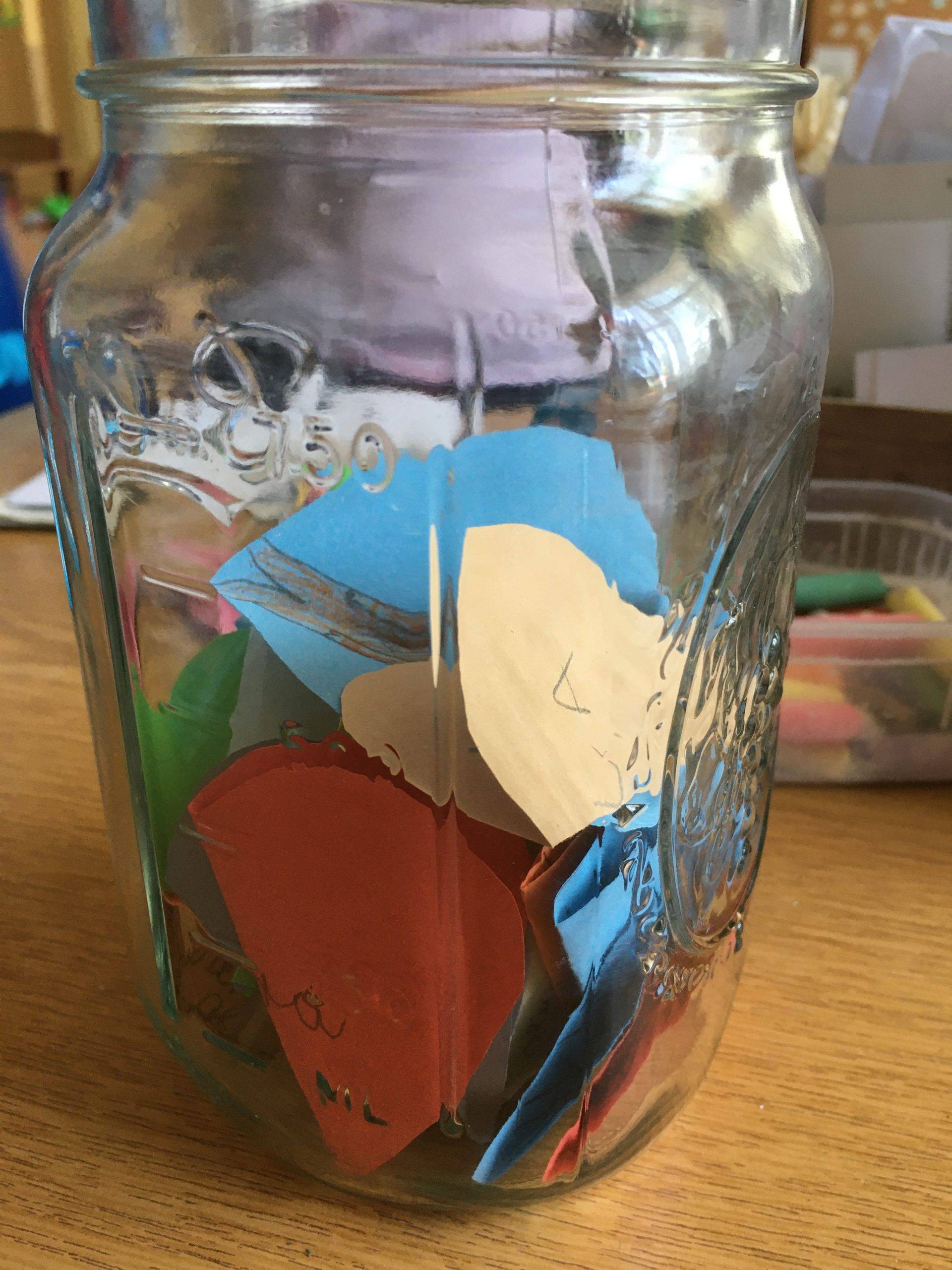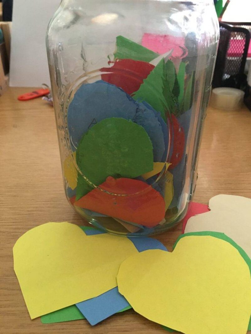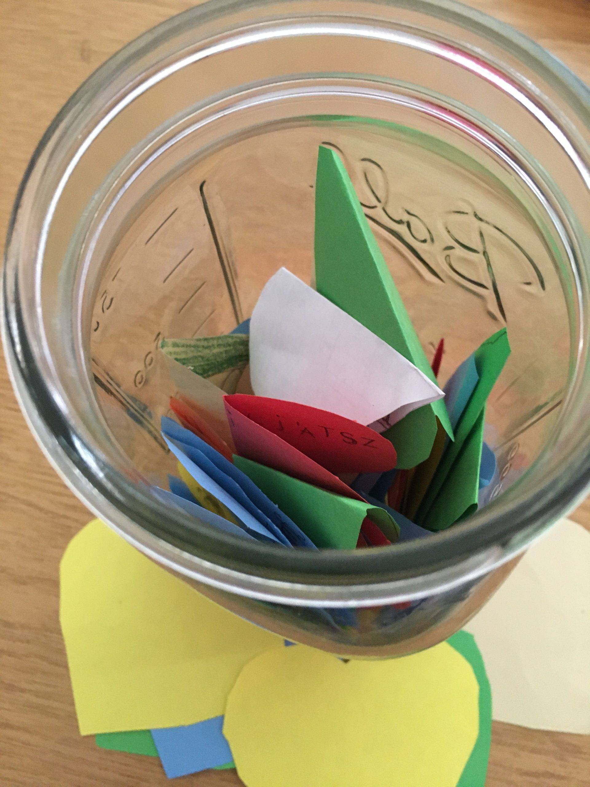 Mindenki ráírta egy kis szívre, milyen pozitív élménye volt ebben a tanévben. A következő évet azzal kezdjük, hogy felnyitjuk a befőttet.