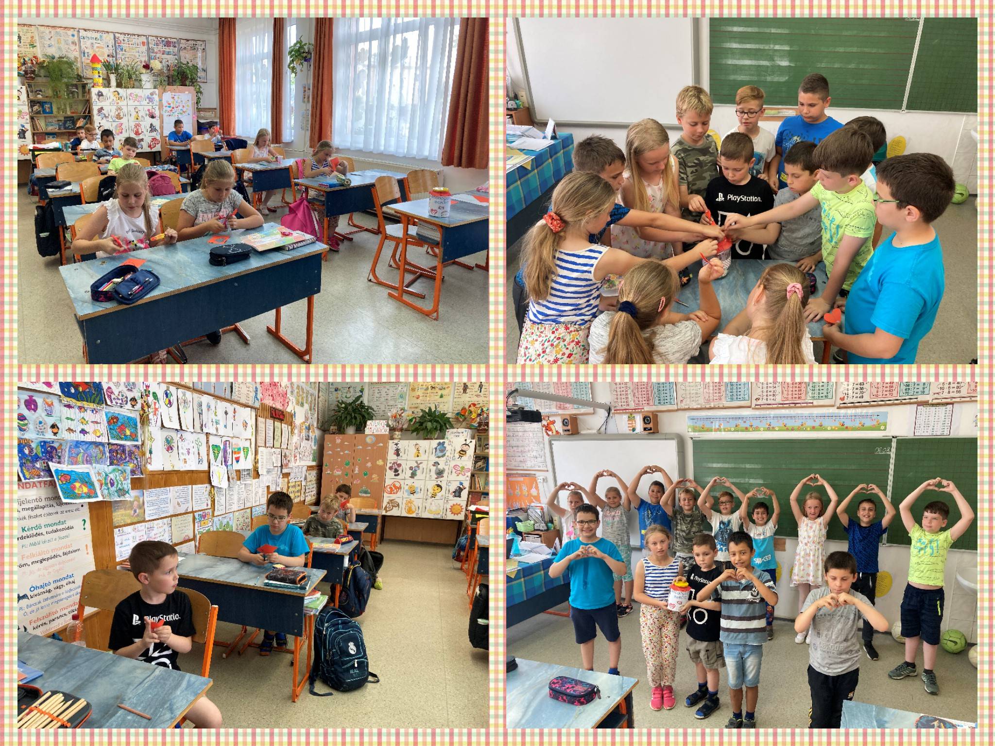 A júniusi boldogságórákon azt vizsgáltuk meg, hogy a 9 hónap témáit hogyan tudják majd alkalmazni mindennapi életükben. Melyik boldogságfokozó technika az, amelyiket a gyerekek szívesen használnak, ami beépült szokásrendszerükbe. A 10 hónapon keresztül egy életre szóló utazáson mentünk keresztül. Kedvenc gyakorlatainkat, játékainkat újra elővettük, melyek rövid időn belül képesek voltak pozitív érzelmekkel feltölteni. A rövid 2 hét alatt a következő feladatokat végeztük el: