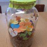 Beszélgetőkörben meséltük el az idei legkedvesebb boldogságórás élményeinket, amiket később papírra is vetettünk rajzok formájában. Ezeket a kis szíveket „eltettük befőttnek” jövőre, a későbbiekre, hogy abból szükség esetén erőt, tanácsot, boldog pillanatokat, mosolyokat, barátságokat varázsoljunk majd elő. Nagyon szép emlékek maradnak, melyek lelkünket simogatják… 🙂