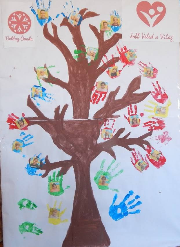 A gyerekekkel közösen elkészítettük a Boldogságfát. Tenyérlenyomatba helyeztük el a fényképeket. Ha ránézünk hálásak vagyunk, hogy együtt lehetünk.