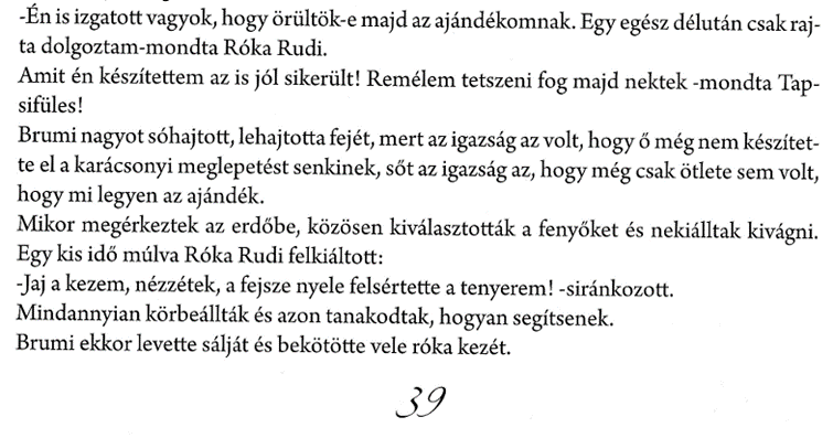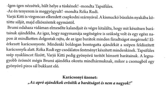 – A mese végén ez a karácsonyi üzenet áll: „Az apró ajándékok erősítik a barátságot és nem a nagyok.”