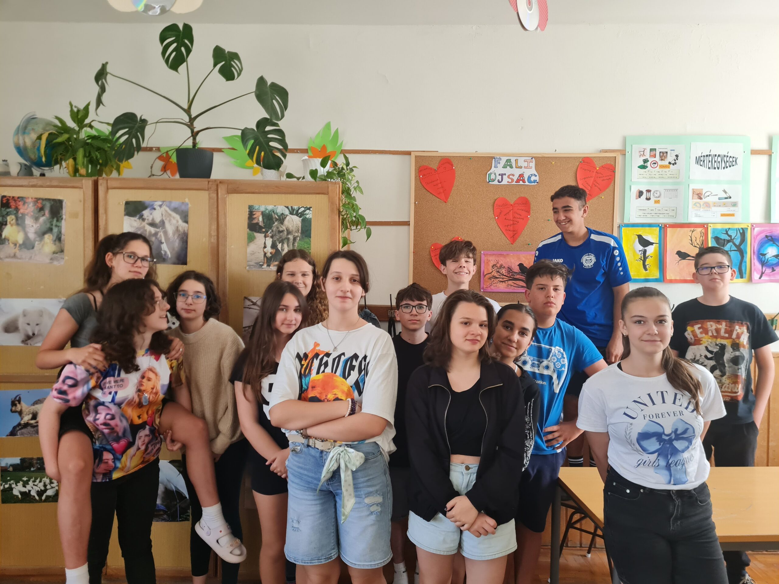 Az óra kezdetén egy „véleménykörrel” indítottunk, amiben mindenkit elmondta, hogy mi jut eszébe a fenntartható boldogságról. Ezután összegyűjtöttük csapatokban a boldogságszint növelő öt hatóerő összetevőit és ezeket egy-egy piros szívecskére írtuk. Ezeket elhelyeztük a faliújságunkon, nyári boldogságfokozó gyakorlatokkal együtt, melyet mindenki nyomtatva meg is kapott. Zárásként legalább hármat választottak ezekből a gyakorlatokból, amit a vakáció alatt teljesíteni fognak.