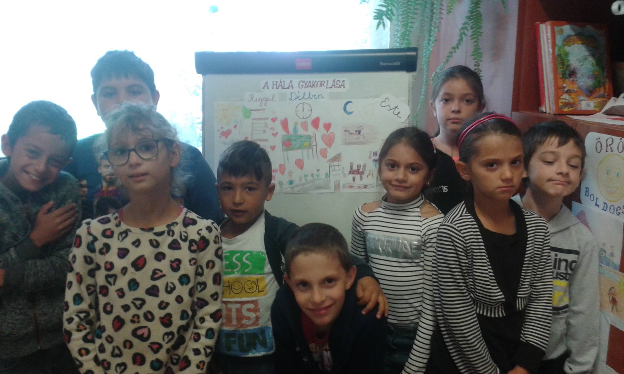 A 2. osztályos tanulókkal beszélgettünk a boldogságról és a háláról. Együtt megbeszéltük a feladatot, hogy kinek és miért lehetünk hálásak. Utána csoportokban beszélgettek, ötleteztek hogy mi kerüljön a plakátra. Jó hangulatban dolgoztak, közben hallgatták a motivációs zenét.