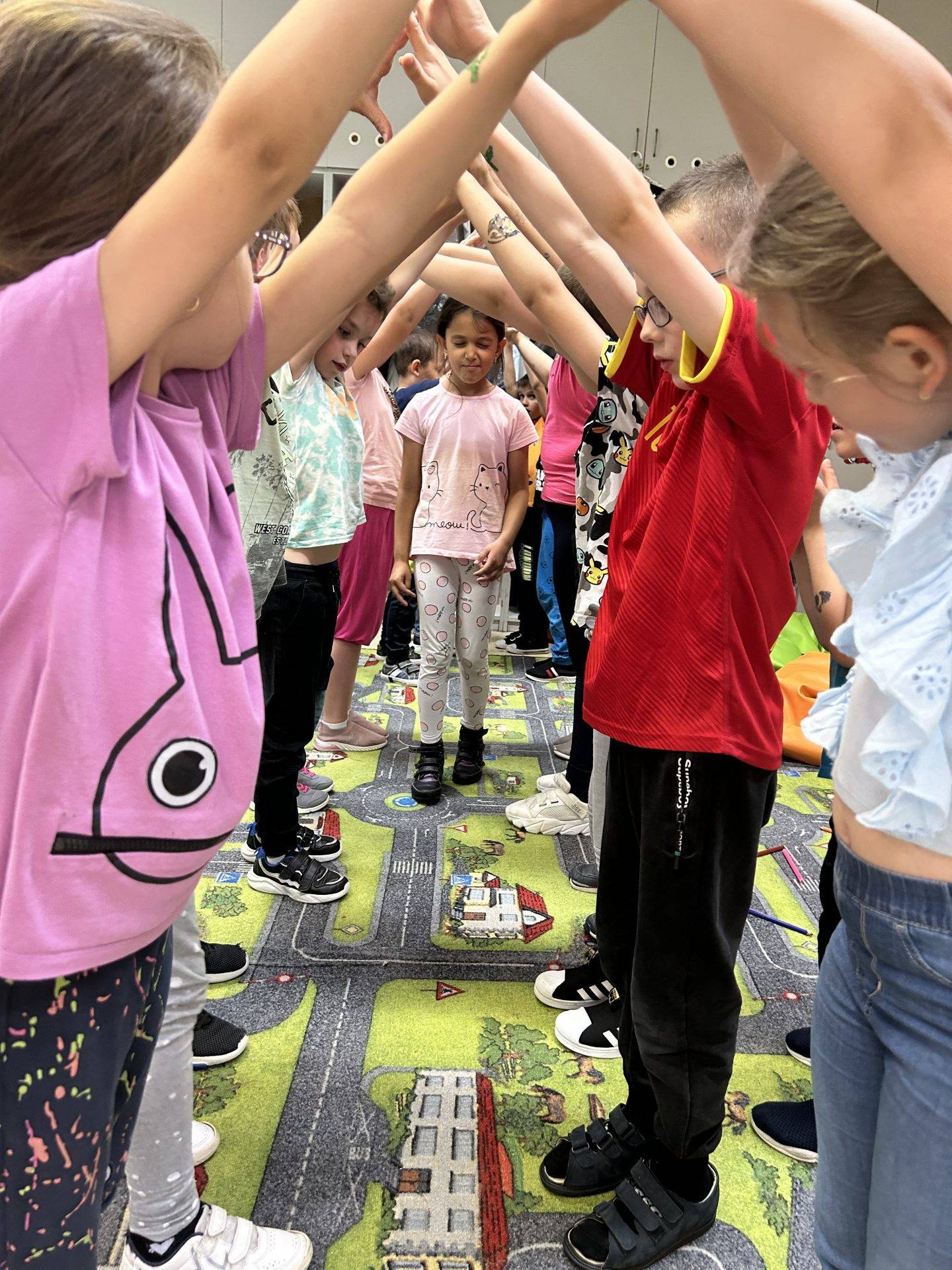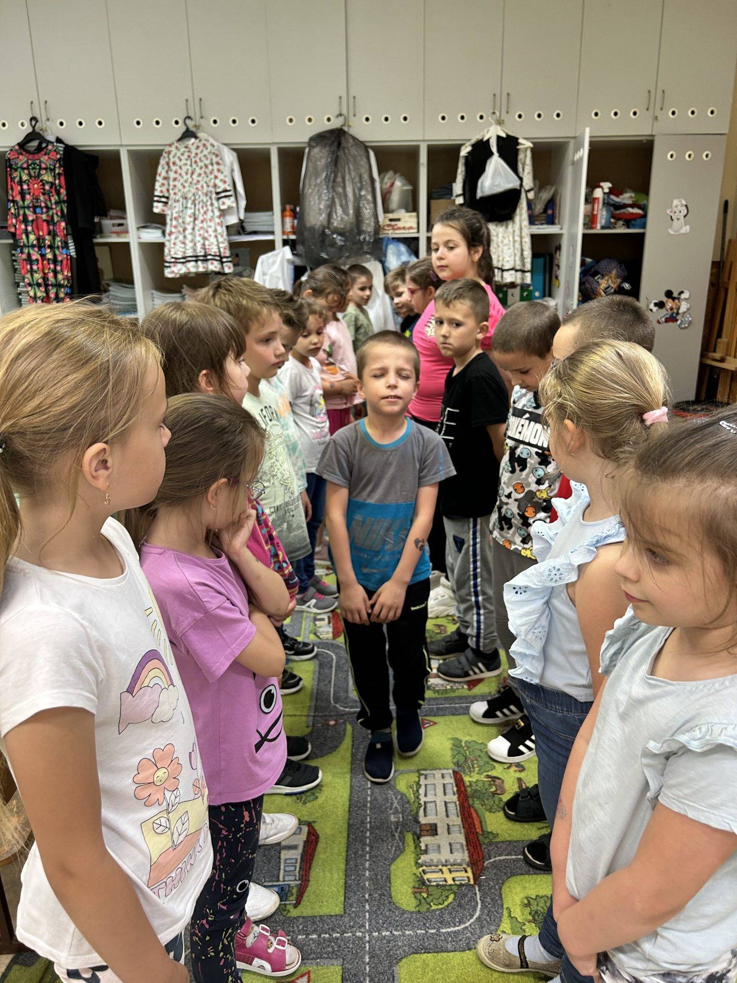 A tanév utolsó boldogság foglalkozását “hintaszék” meditációval kezdtük. Majd ezen a helyen maradva hallgatták végig a Boldog erdő mesét. Megbeszéltük ki melyik részen élne szívesen, azt is megmagyarázták miért. Ki milyen színű gyöngyöt szeretett volna. Mindenki kapott egy tálba gyöngyöt, cérnát és a laminált boldogság fokozó jeleket. Míg a boldogság fűzérük készült megbeszéltük az összes jelet, majd relaxációs zenéket hallgattak. A lánc elkészülte után szeretetfolyosót játszottunk. Jövőre folytatjuk.
