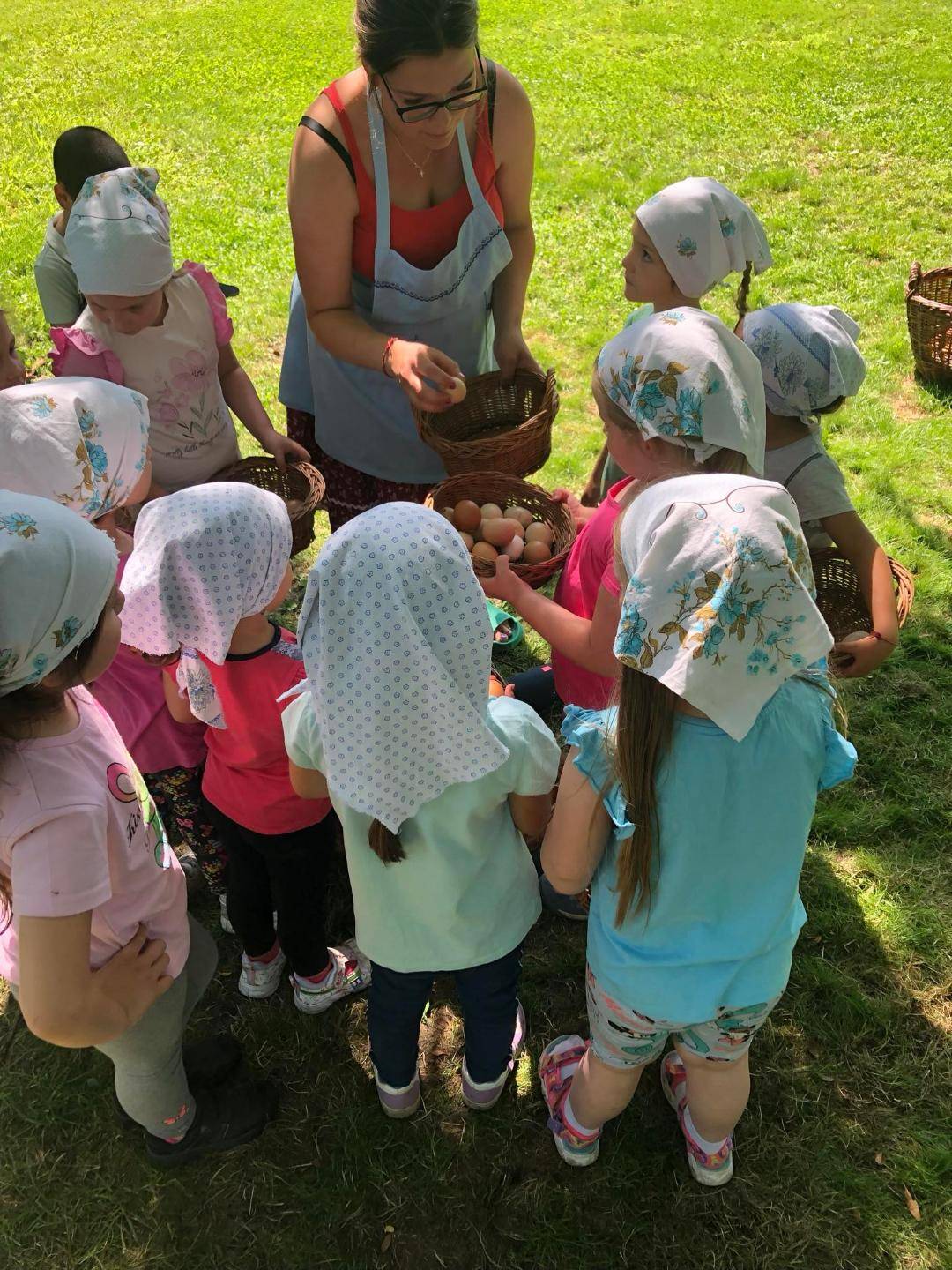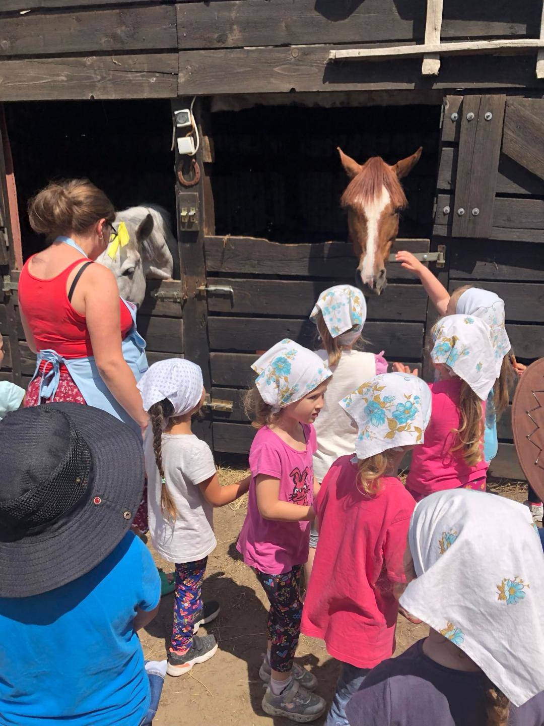 A gyermekek ismét kipróbálhatták a szekerezést is, ami nagy élmény volt számukra. A településünkön lévő Pöttöm majorba látogattunk el, ahol színes szabadtéri tanyasi programokkal várt a “gazdasszony” bennünket. Egy szempillantás alatt mi is átváltoztunk gazdává és gazdasszonnyá . A gyermekek önfeledten vettek részt a sok -sok játékos tevékenységben és otthon örömmel meséltek szüleiknek élményeikről.