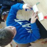 Ajándék készítése az ünnep közeledtével szeretteinknek. Az ajándék egy kuponfüzet, melyen boldogságot okozó cselekedetek vannak(pl.:közös film nézése, masszázs, reggeli az ágyban, egy nagy ölelés,…). Aki kapja minden nap választhat, mit szeretne, hogy teljesüljön a kínálatból. Szükséges eszközök: olló, ragasztó, tűzőgép, A/4-es nyomtatópapír, csomagolópapír, díszszalag. Előzetes feladat: Mivel okozhatunk a másiknak boldogságot? Egy rövid videófilm megnézése után( melyben az idős apuka csak úgy tudja karácsonyra hazahívni gyermekeit, hogy táviratot küld, hogy meghalt.)beszélgettünk, hogyan tudunk örömet, boldogságot okozni szeretteinknek. A gyerekek által hozott ötleteket közösen megvitattuk, majd a legjobbakat kiválasztva, néhány tanuló segítségével egy egységes, tíz cselekedetből álló kártyasorozatot alkottunk. A következő héten készítettük el magát a kuponfüzetet. Munkamenet: kártyák színezése, kinyírása, összetűzése, csomagolása, díszítőszalag felhelyezése.