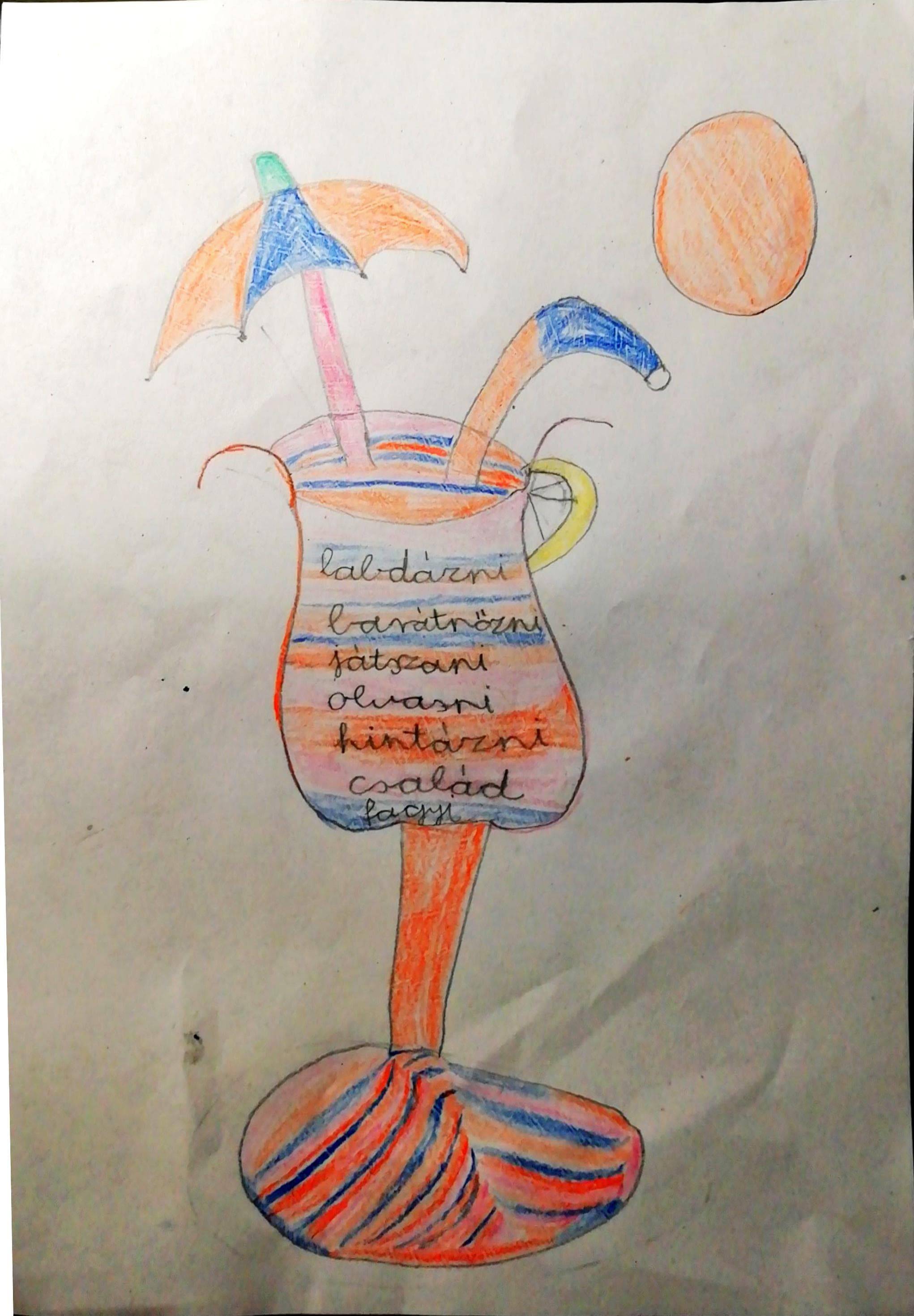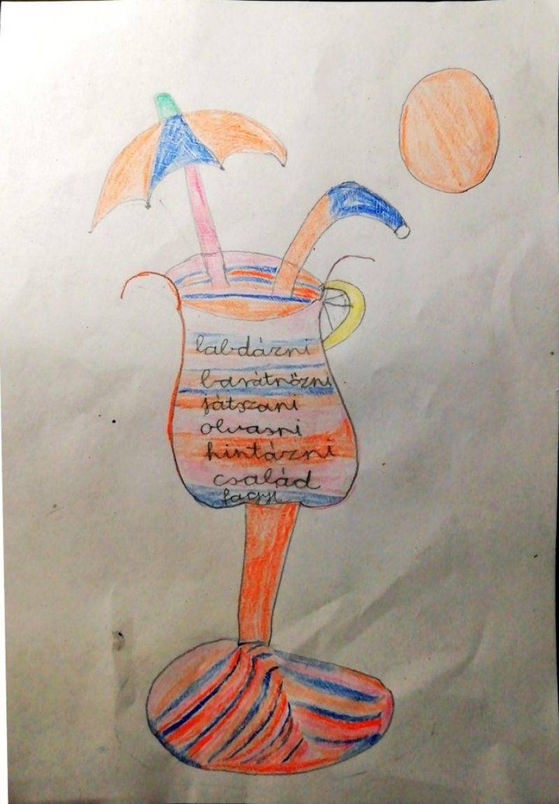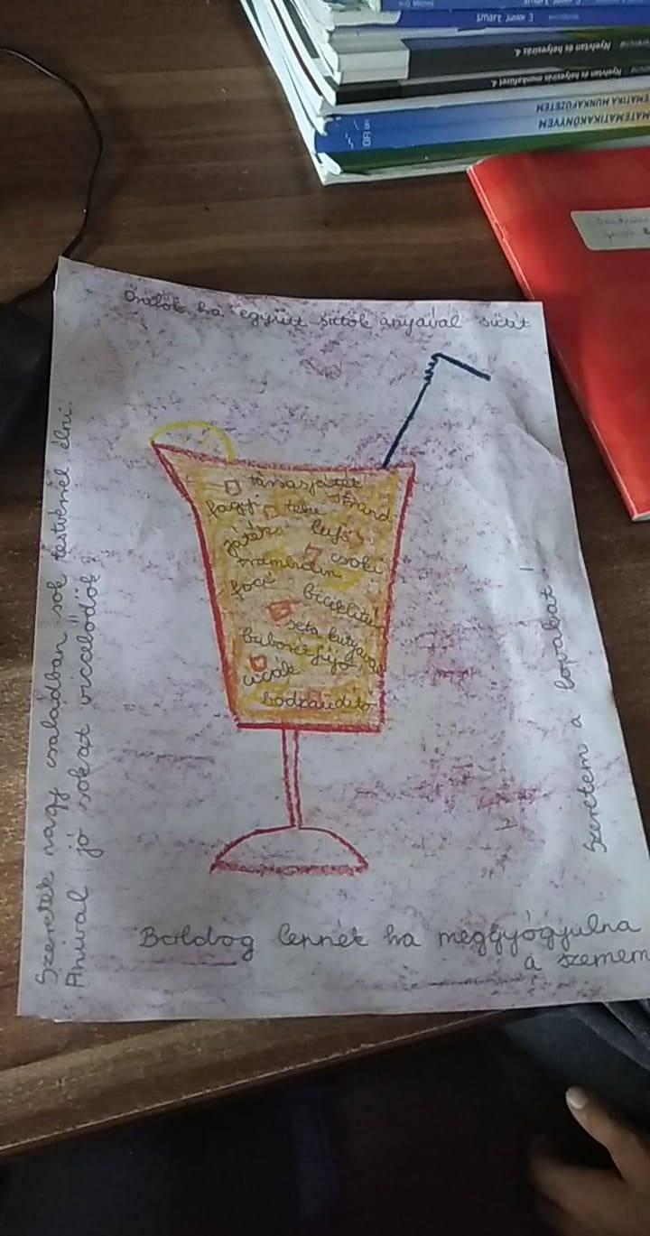 Arra kérlek , hogy rajzolj egy nagy poharat! Írjál bele boldogító, kedves szavakat. Olyan szavakat írj, amelyektől te jól érzed magad. Készítsd el a saját boldogságkoktélodat!
