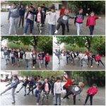 Az elméleti ismeretek és beszélgetés után mozogtunk egyet az udvaron. A relaxációs gyakorlatok közül az Összehangoló 1-2-3-4. nevű gyakorlatokat választottuk. Ezek igazolták a korábban megbeszélt elméleti hátteret: kitartást igénylő gyakorlatok, amik nem mindig sikerültek elsőre, de a gyerekek maguk mondták ki, hogy a fenntarthatóság itt is fontos. Nem szabad feladni az első sikertelen próbálkozás után, hanem folyamatosan gyakorolni kell, vissza kell térni egy-egy kudarc után és újra elő kell venni ezeket a gyakorlatokat, hosszú távon sikeresebbek lehetünk, könnyebben fog menni. Szintén igazolódott a társas támogatás szükségessége is, motiváló volt az osztálytársak ügyessége, sikere. A boldogság fokozását mindenképpen elértük a gyakorlatokkal, jókat kacagtunk közben.