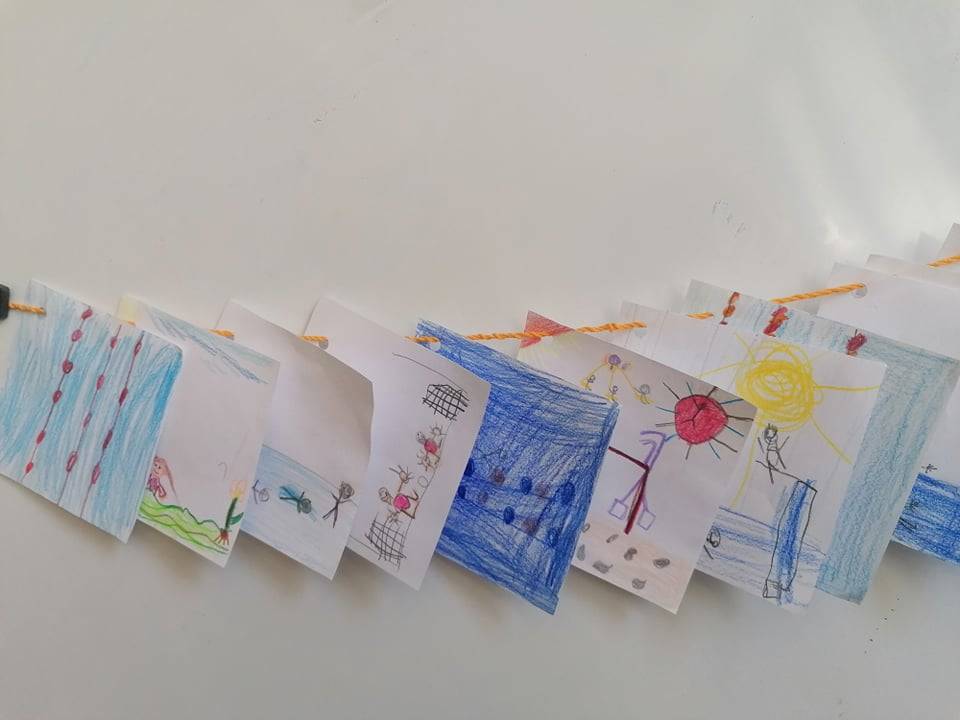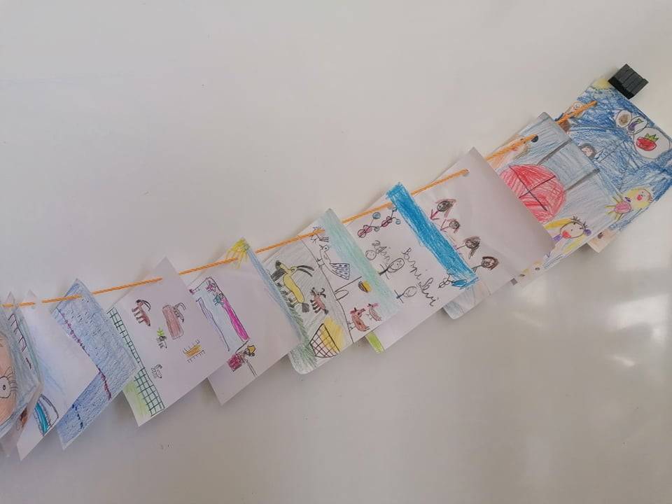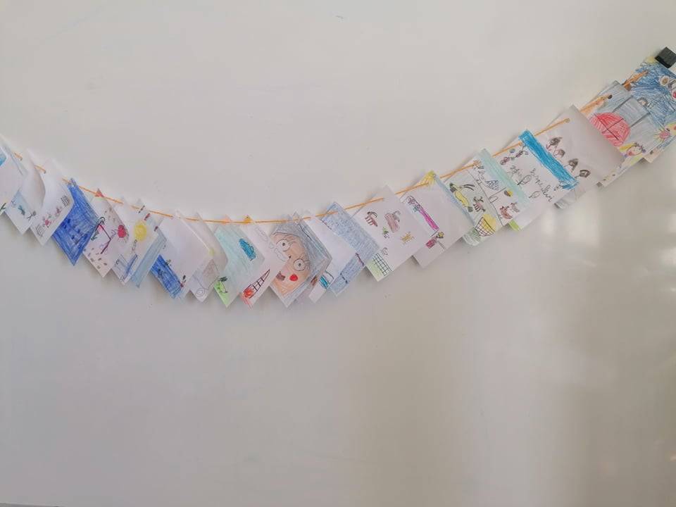 Meghallgattuk a Repülj velem című Bagdi Bella számot és Meseországba elutazván elmeséltem az Út a boldogság országába című mesét. Közös beszélgetés után a hónap dalának hallgatása közben Boldogságláncot készítettünk. Minden gyöngyszemre ( lapra) lerajzoltak, egy idei tanévben történt kellemes emléket. majd felfűztük egy fonalra.