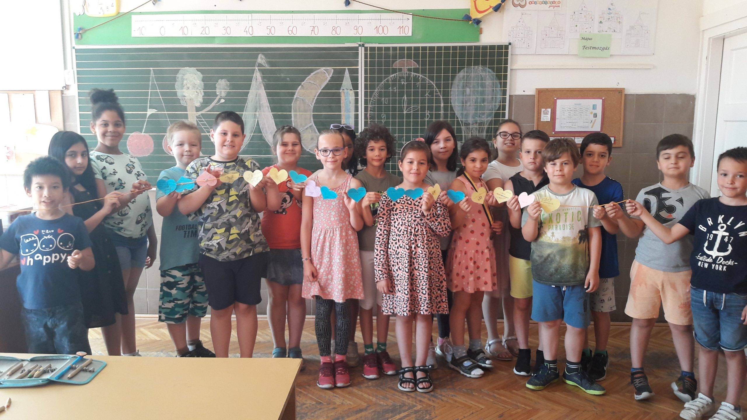 Felsoroltuk a tanév témáit, és felidéztük, hogy melyiket hogyan dolgoztuk fel. A kedvencekből felfűztük az osztály boldogságláncát.
