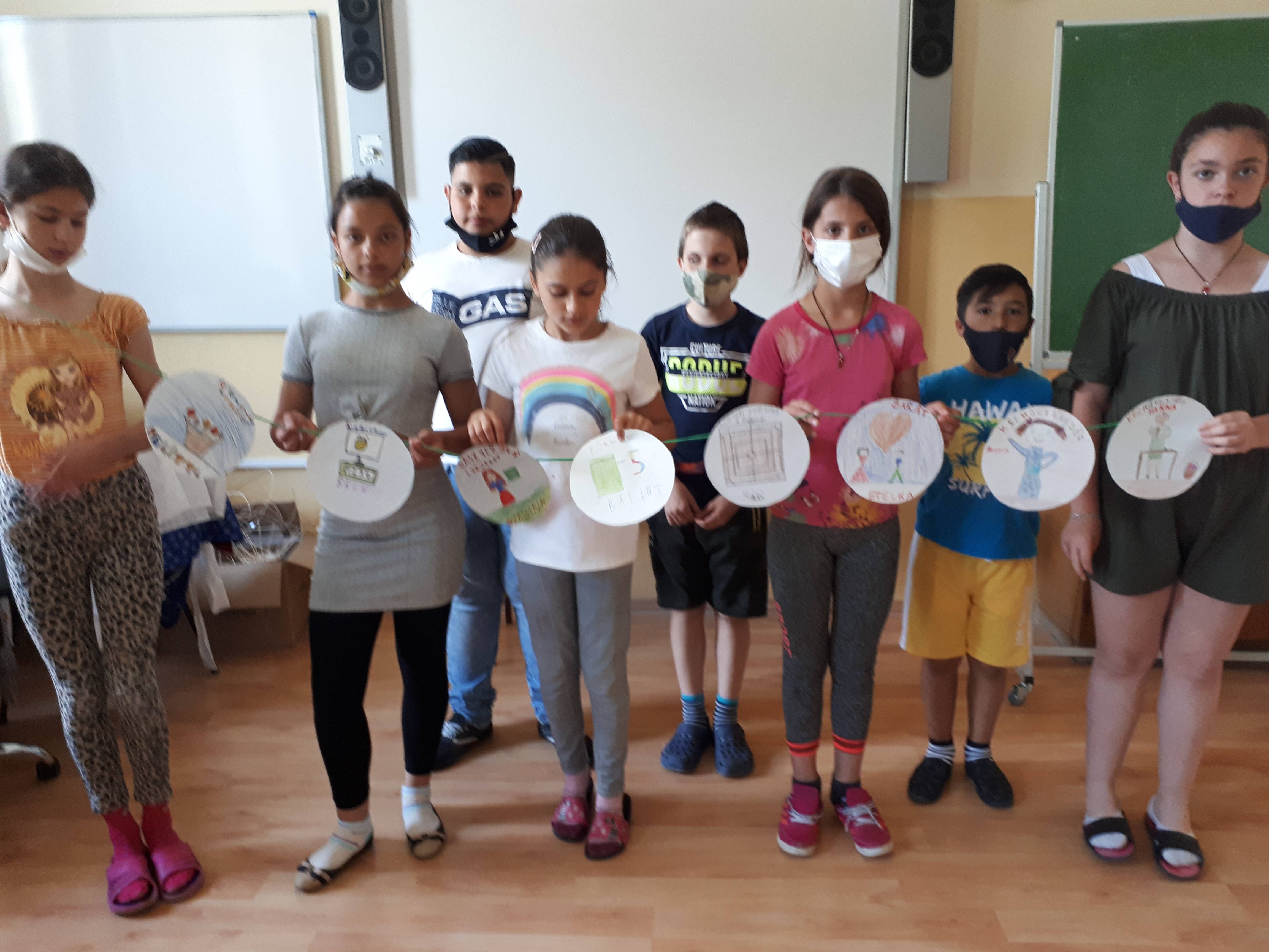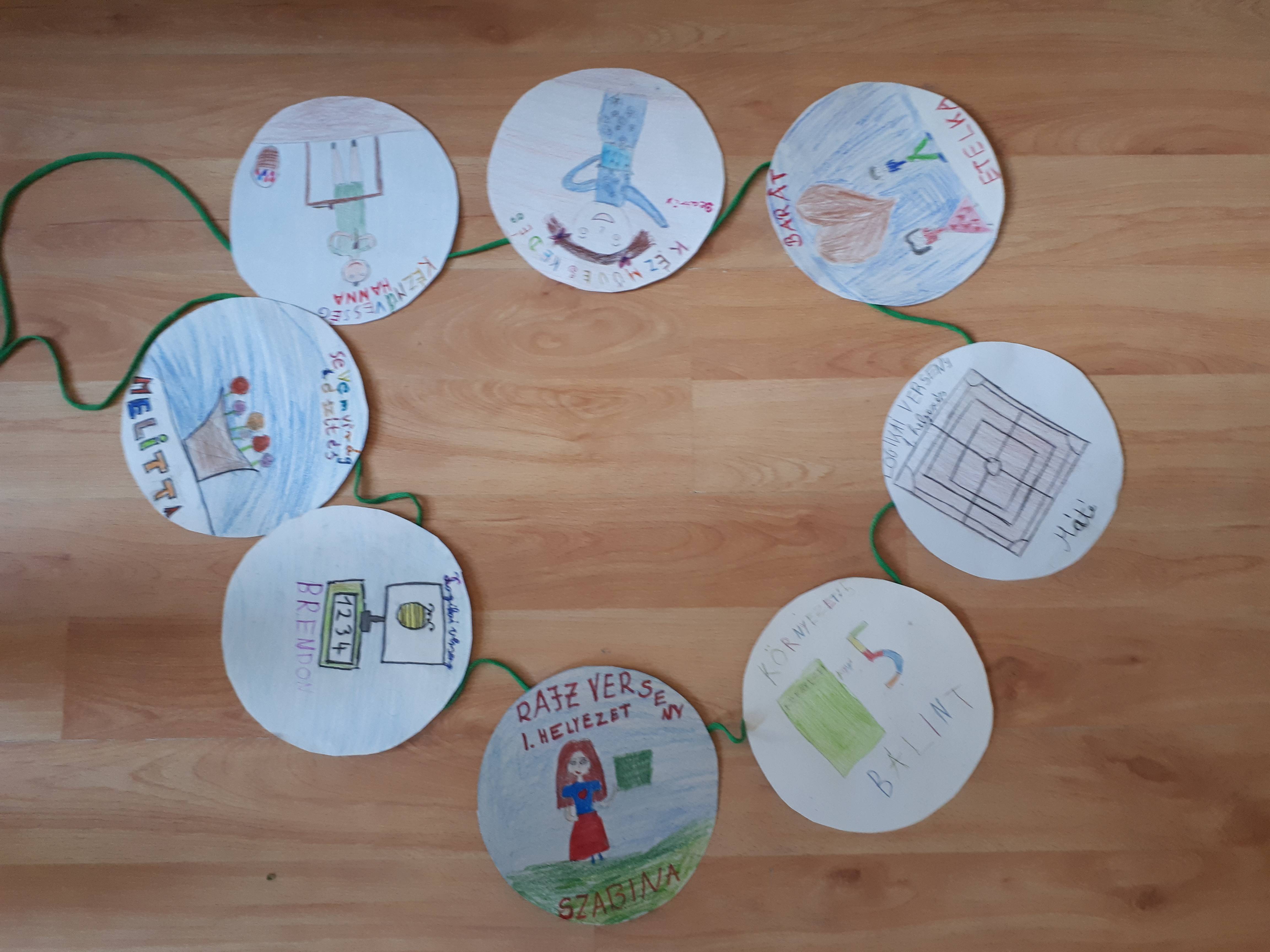 A gyerekek összegyűjtötték, hogy milyen kellemes dolog érte őket az év folyamán. Beszélgettünk arról hogy mitől érzik magukat megelégedettnek, boldognak. Ezeket le is rajzolták, melyet felfűztek egy közös boldogságláncra.