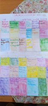 Az elmúlt hónapok boldogságóráinak egy -egy pillanatát,eszközét,színezőjét ismételtük át, ezzel is felidézve az órák emlékeit .Mozgásos játékként a seprűtáncot jártuk el.Csoport munkában készítettük el a családi boldogságnaptárt a nyári időszakra.